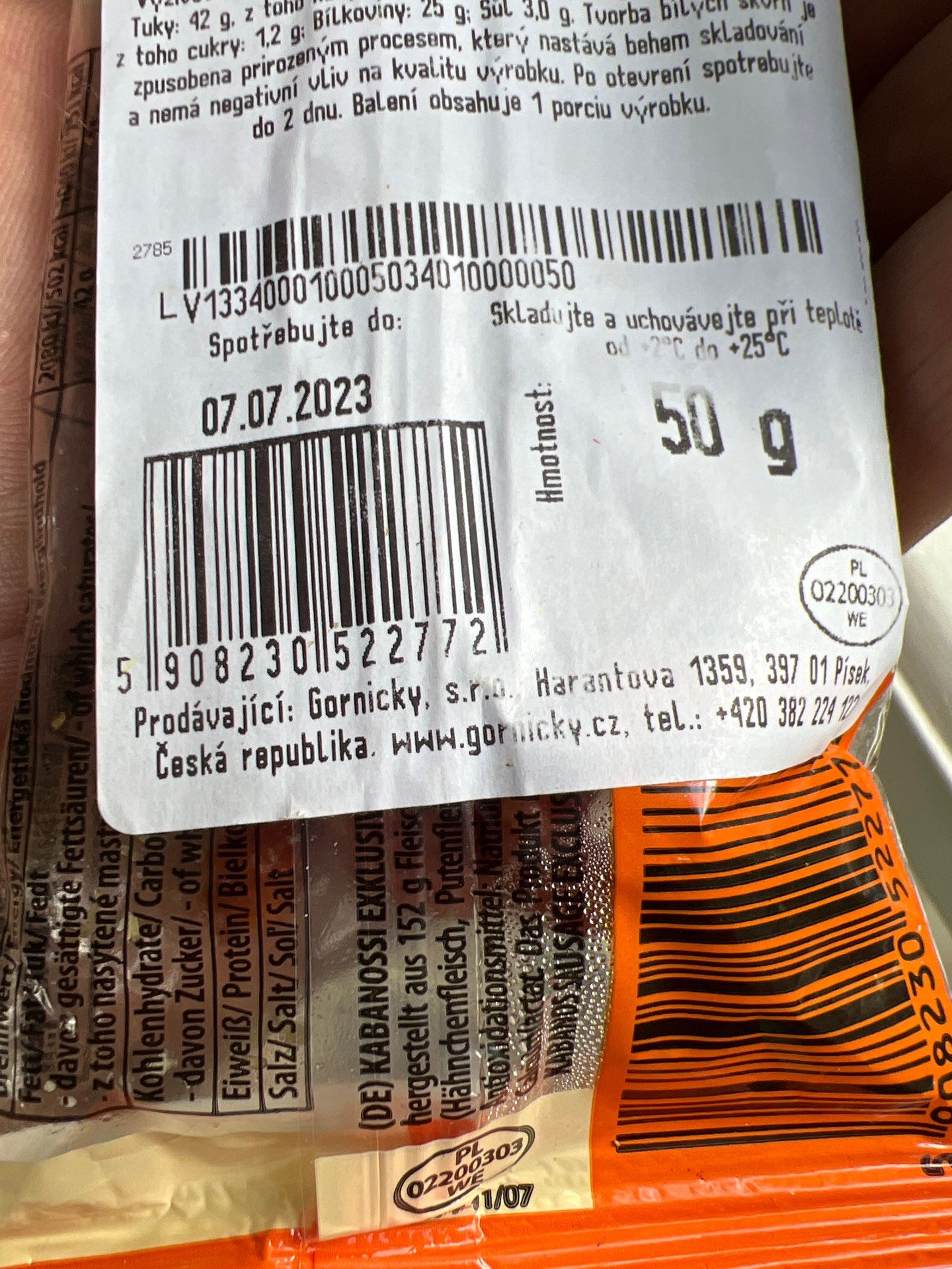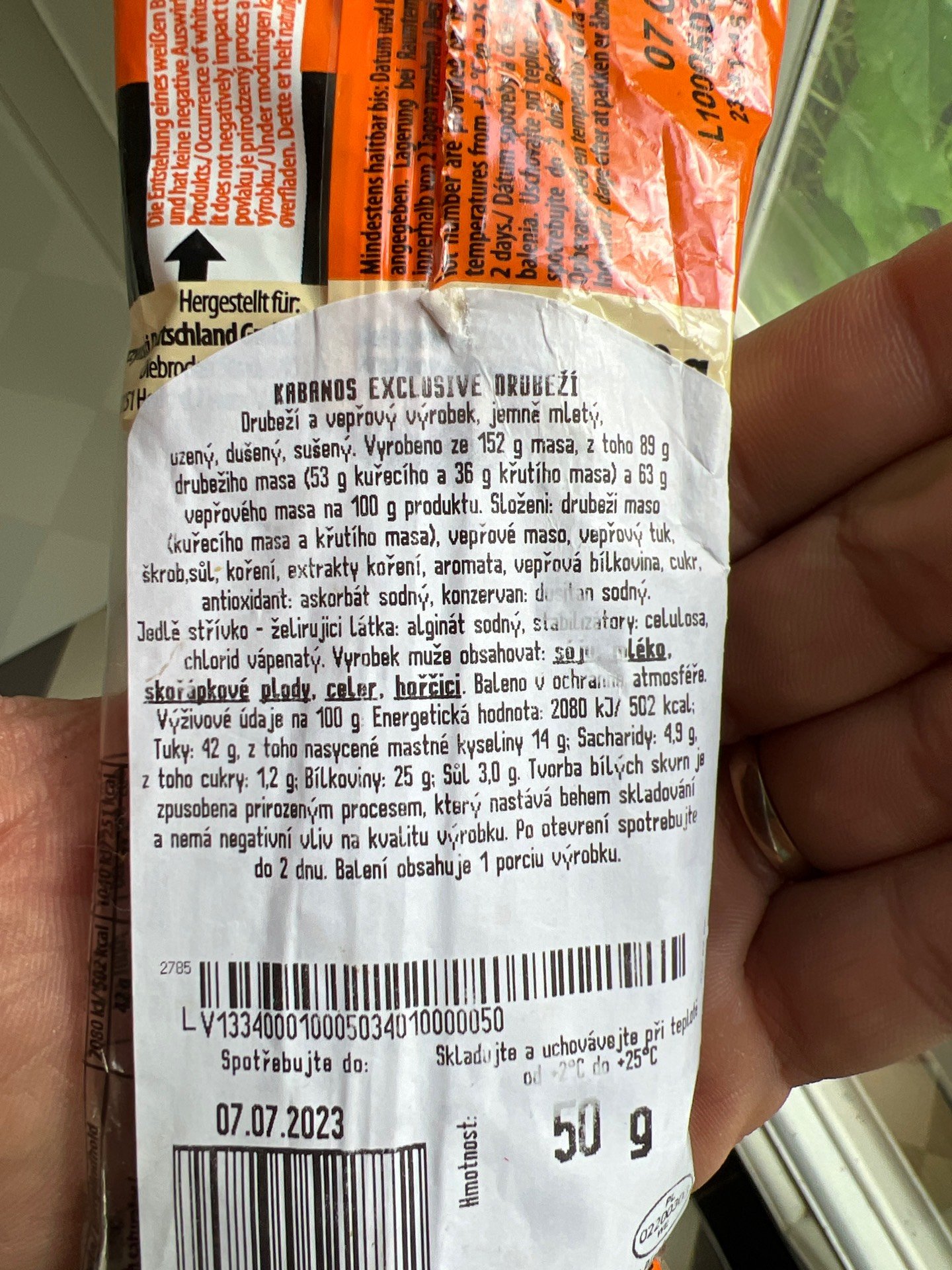 Na 100 g výrobku bylo použito 53 g uřecího masa, 36 g krůtího masa a 63 g vepřového masa.