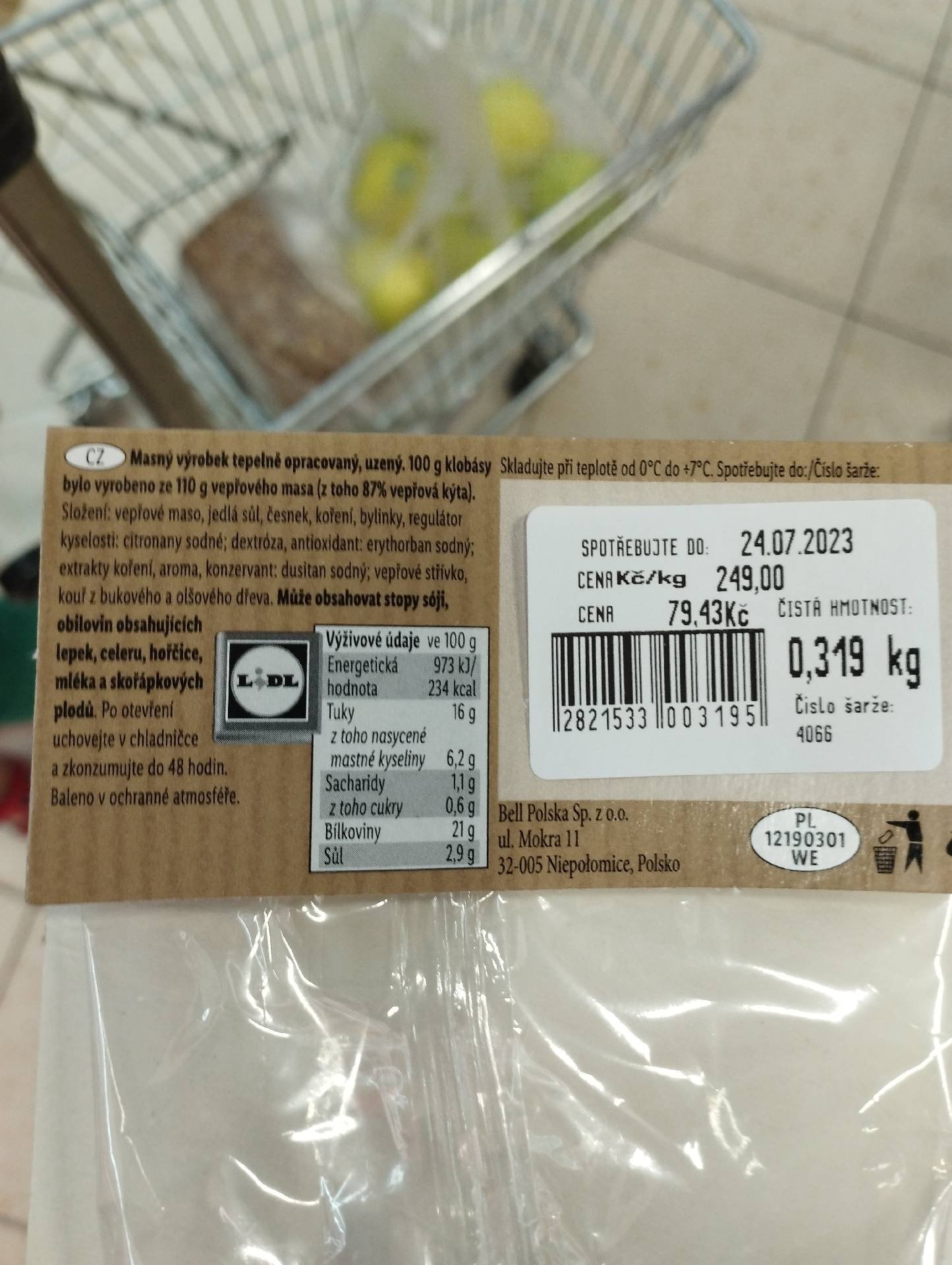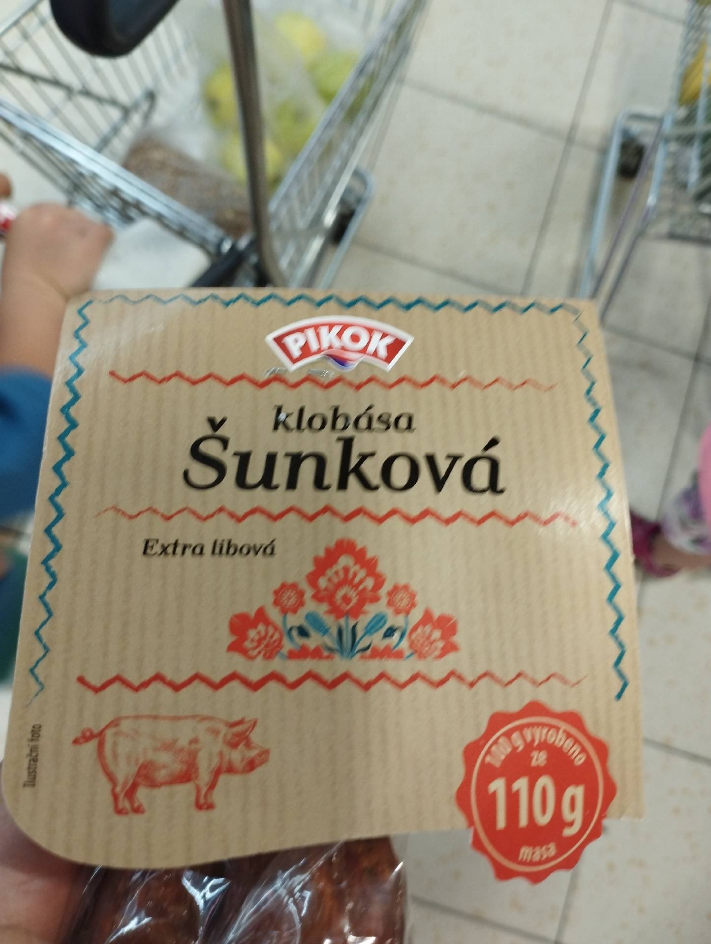 Na 100 g klobásky bylo použito 110 g masam.
