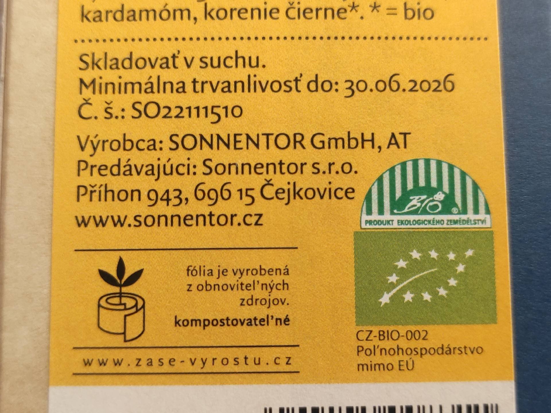 | Výrobce: | Sonnentor GmbH, Rakousko |