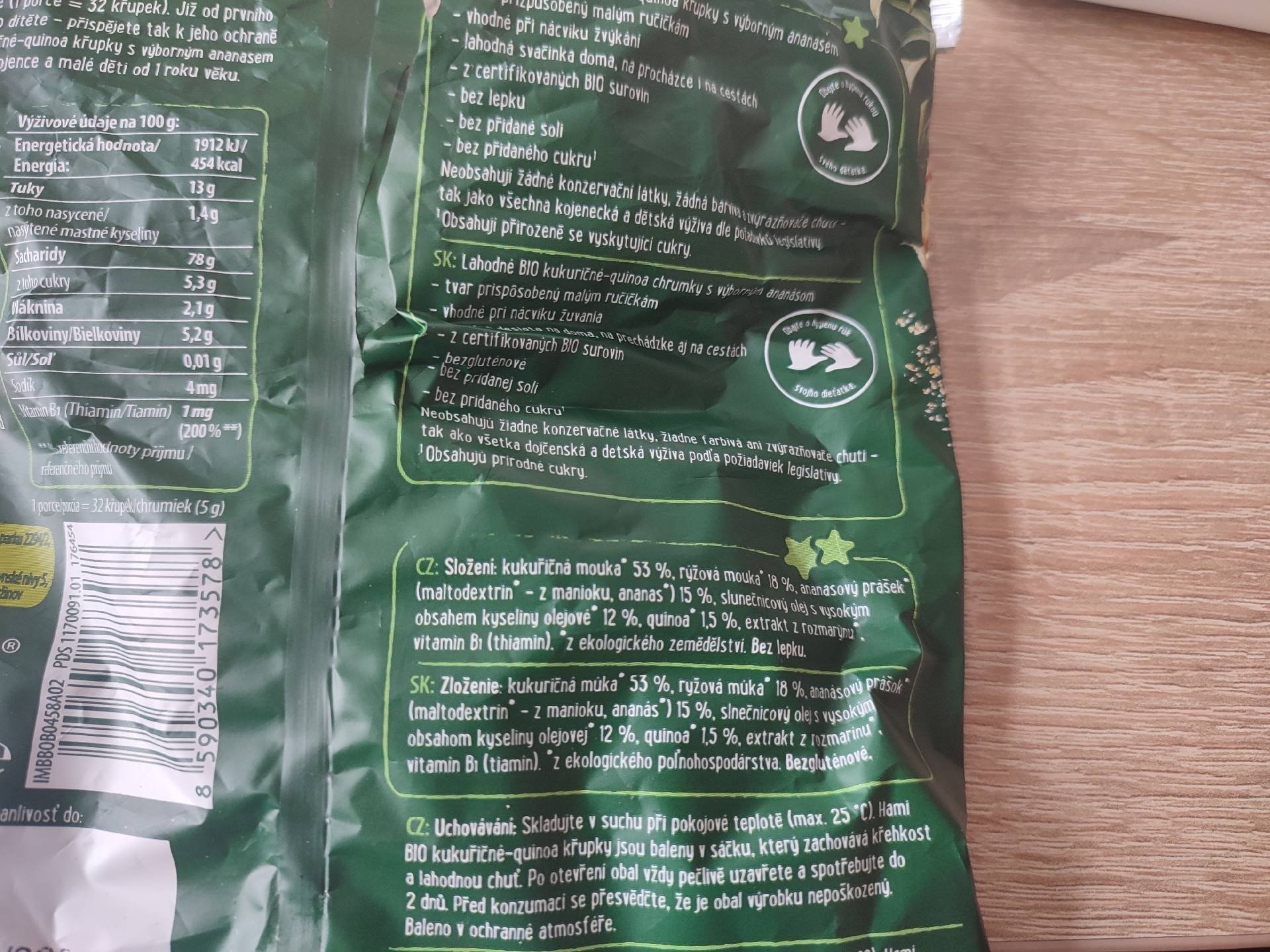 Bio kukuřično-quinoa křupky s výborným ananasem.