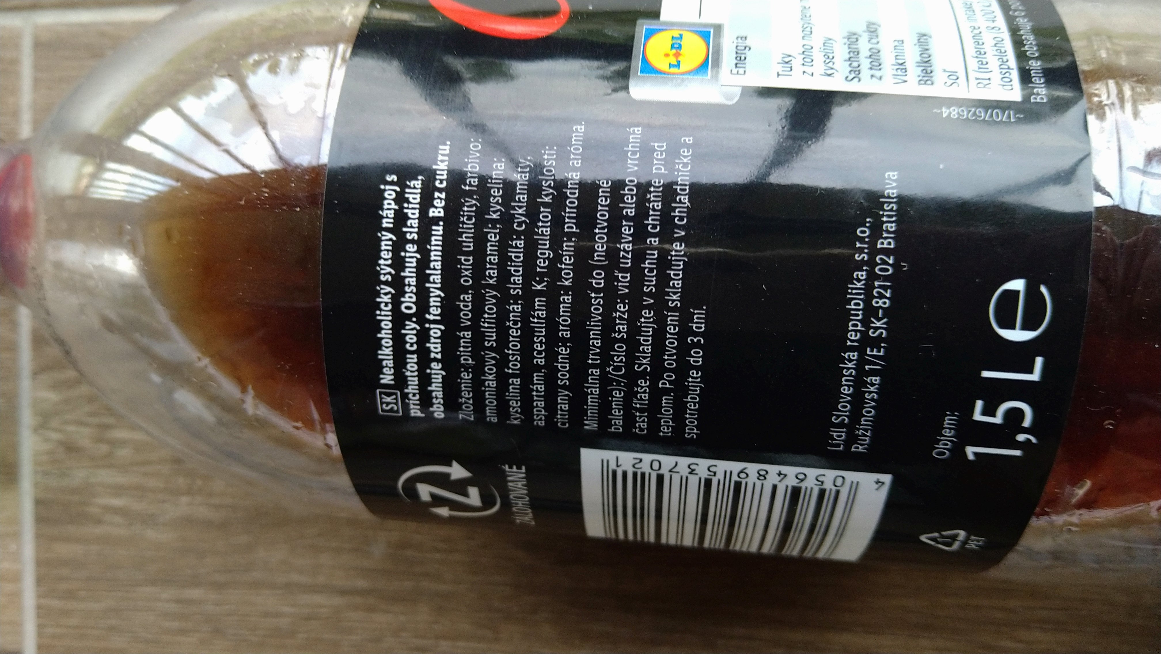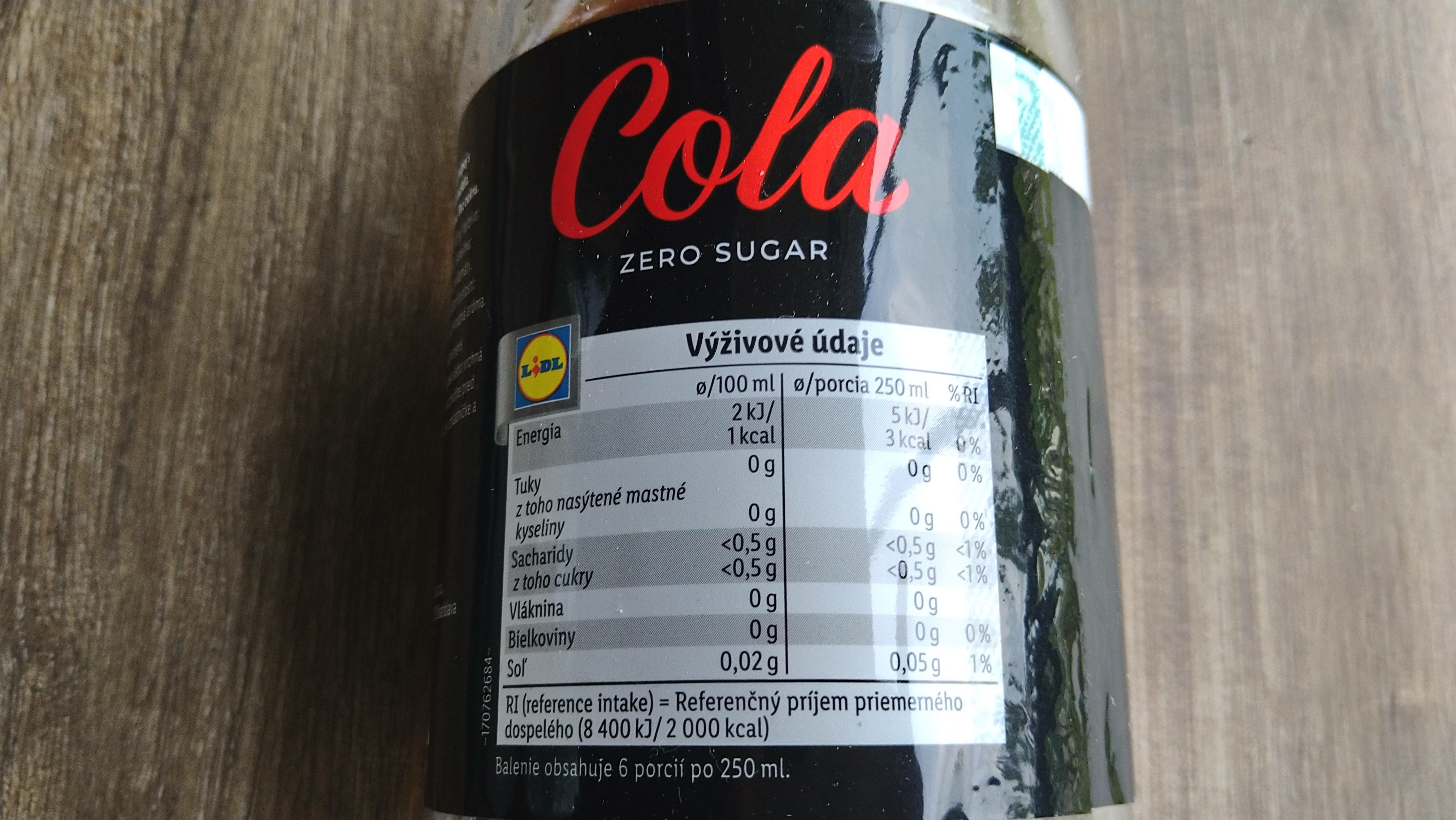 Nealkoholický sycený nápoj s příchutí coly. Obsahuje sladidla, obsahuje zdroj fenylalaninu. Bez cukru.