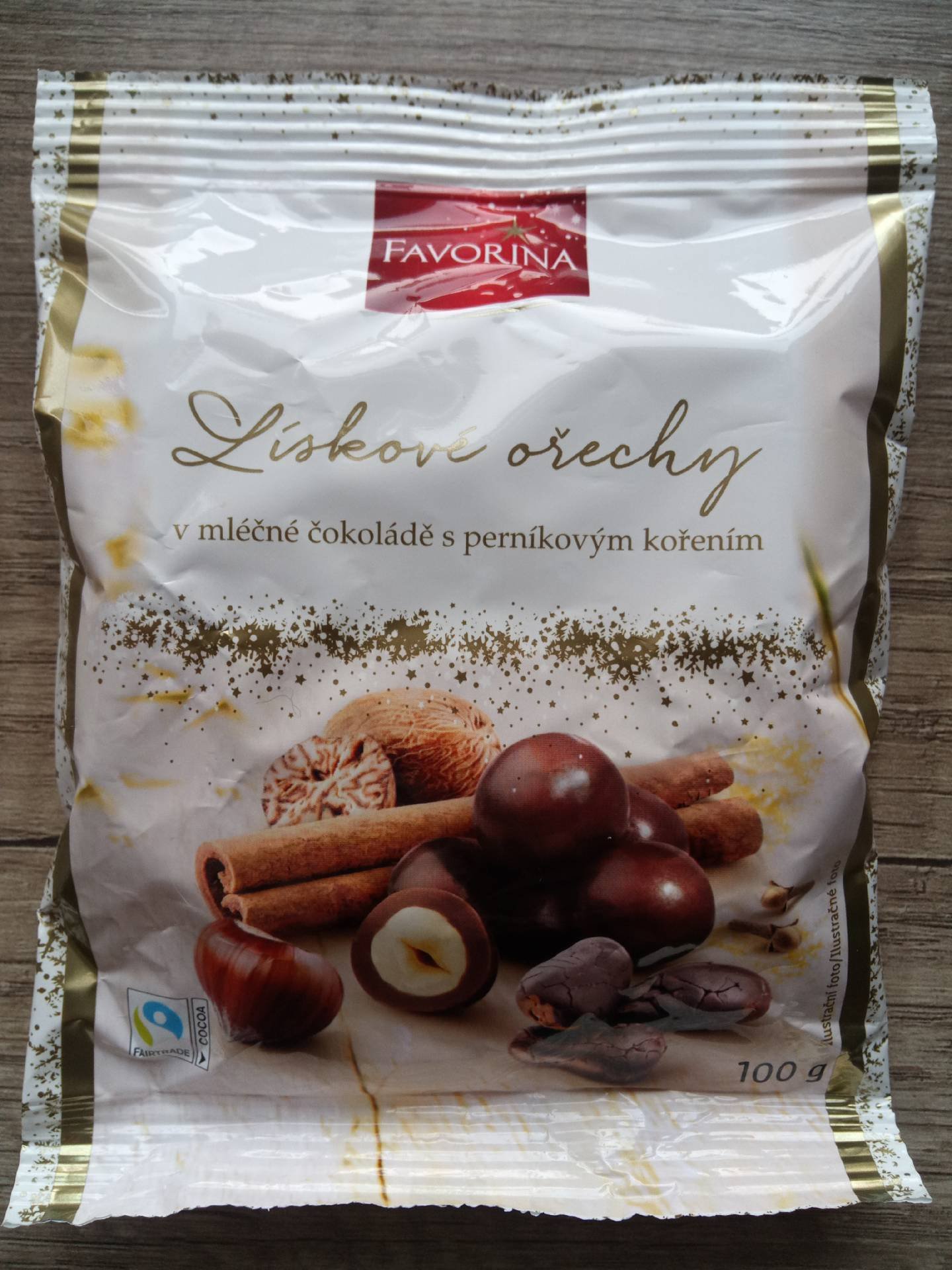 Lískové ořechy v mléčné čokoládě s perníkovým kořením.