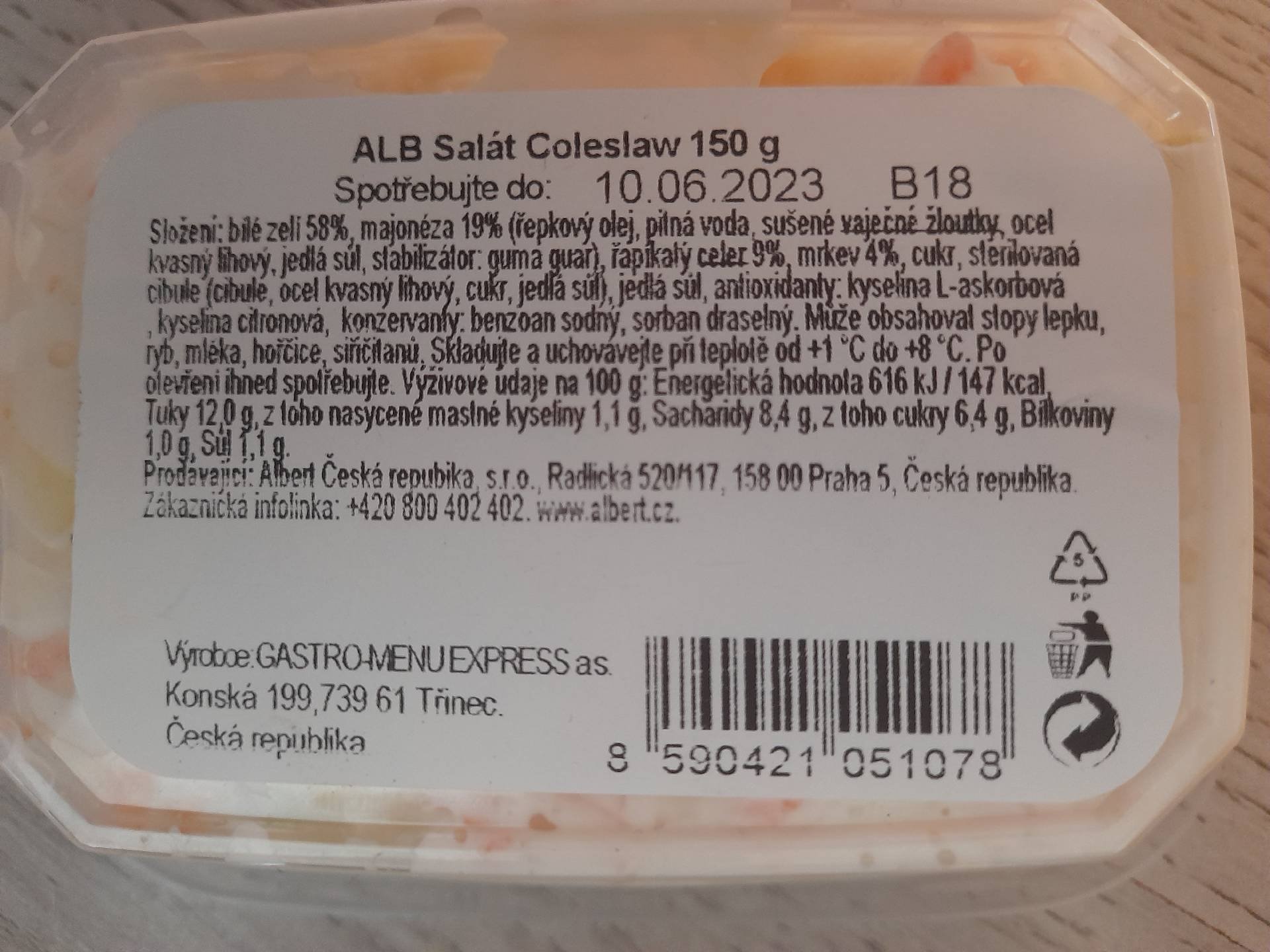 FÉR potravina > Databáze potravin > Majónézové saláty, ostatní > Salát Coleslaw