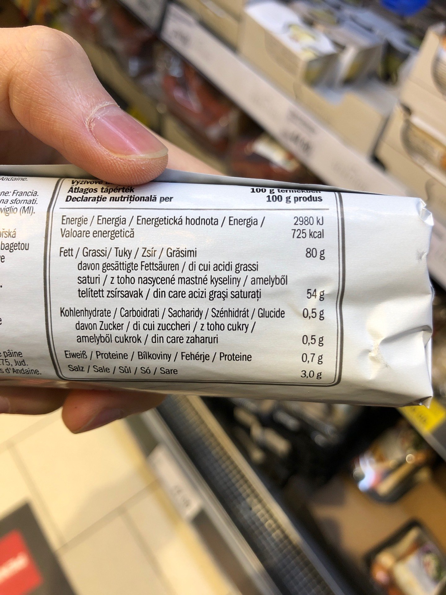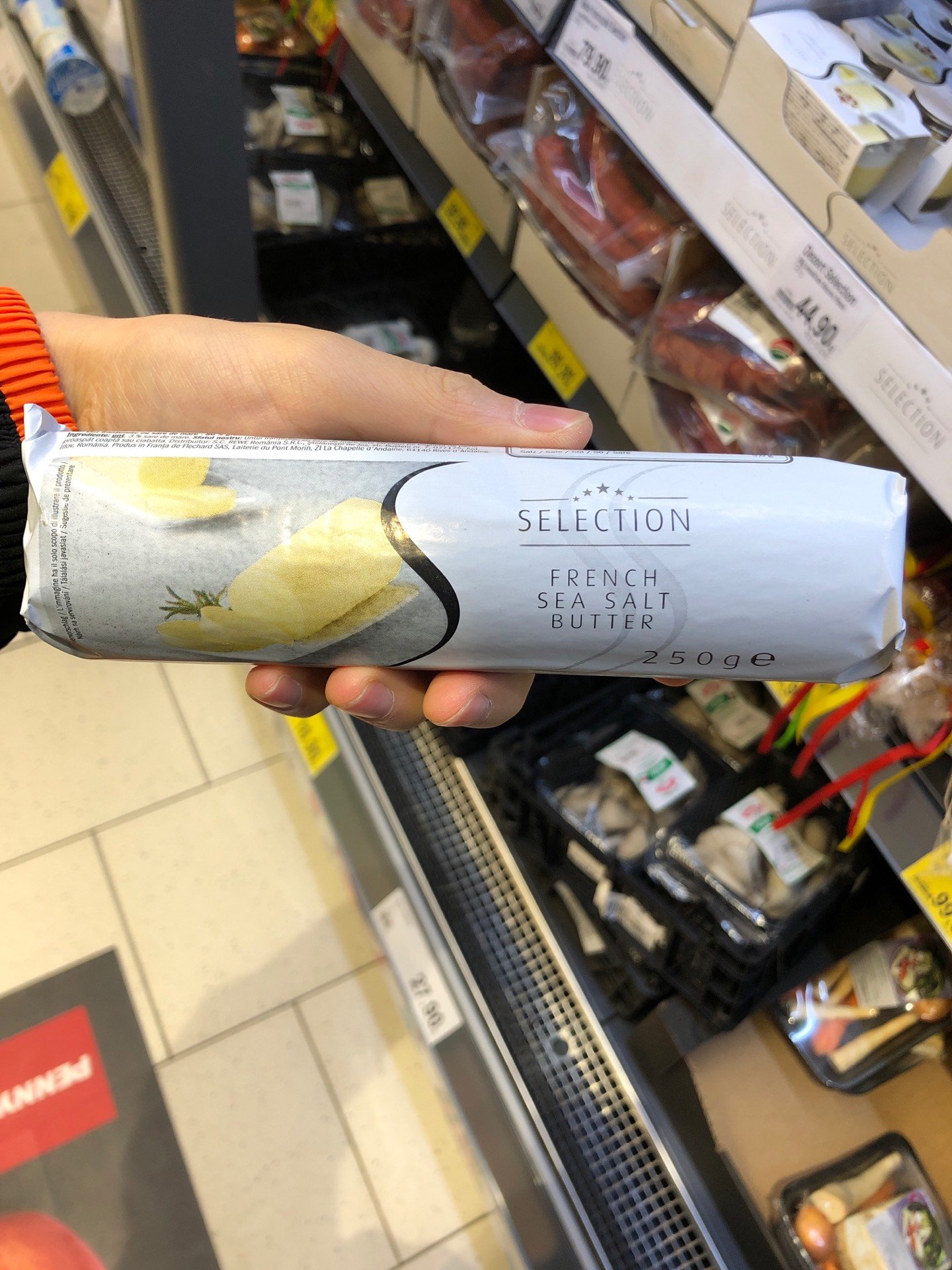 Máslo s mořskou solí z oblasti Sel de Guérande. Obsah tuku 80%.