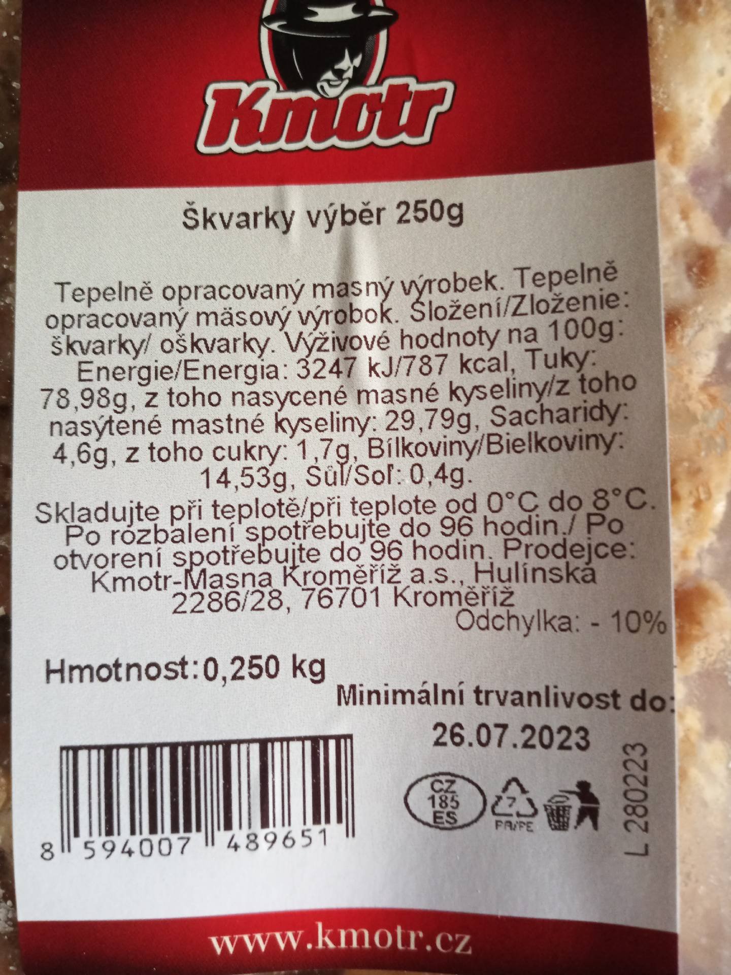 | Obsah přidaných dusitanů | - neuvedeno - | 0 |