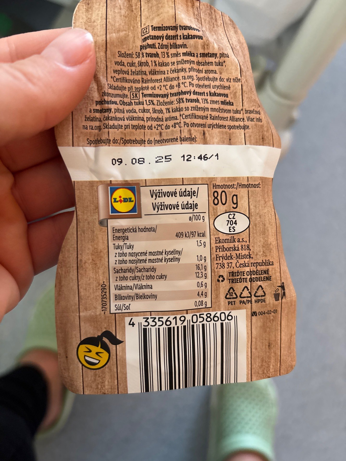 termizovaný tvarohovo-smetanový dezert s kakaovou příchutí