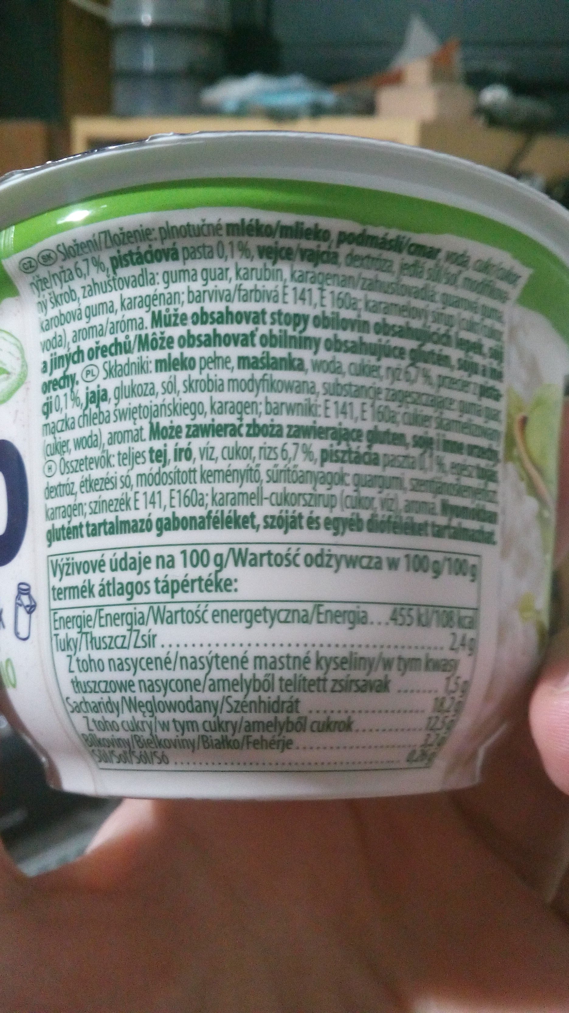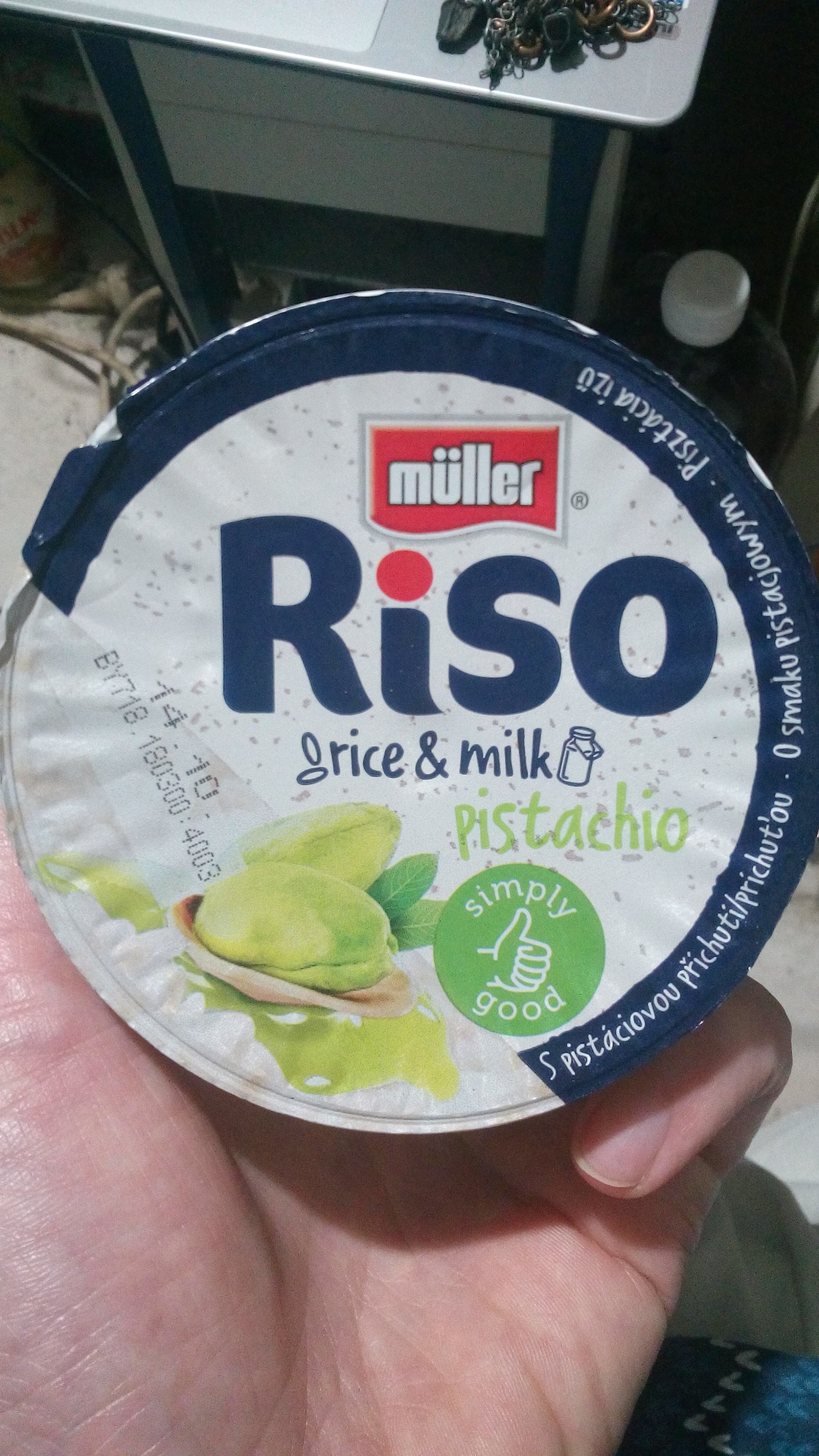 Mléčná rýže s příchutí pistácie. Obsah tuku 2,4%.