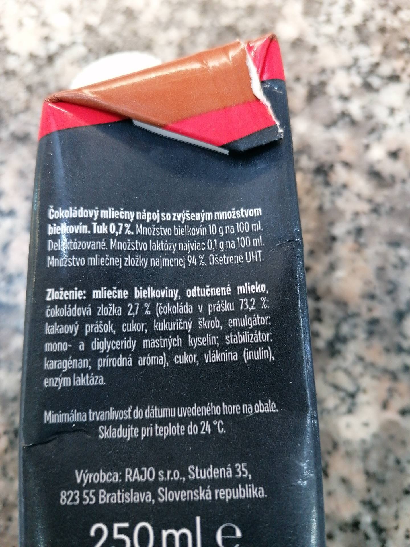 Čokoládový mléčný nápoj se zvýšeným obsahem bílkovin..