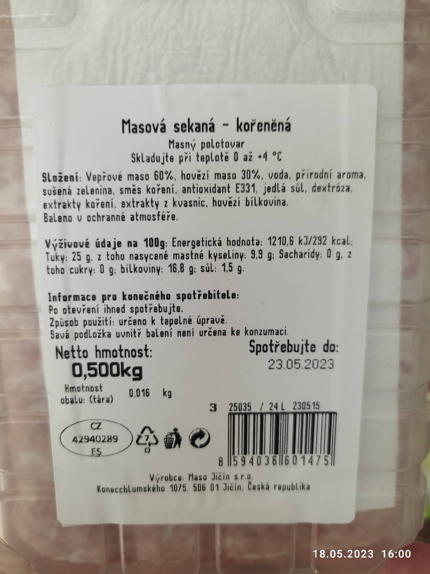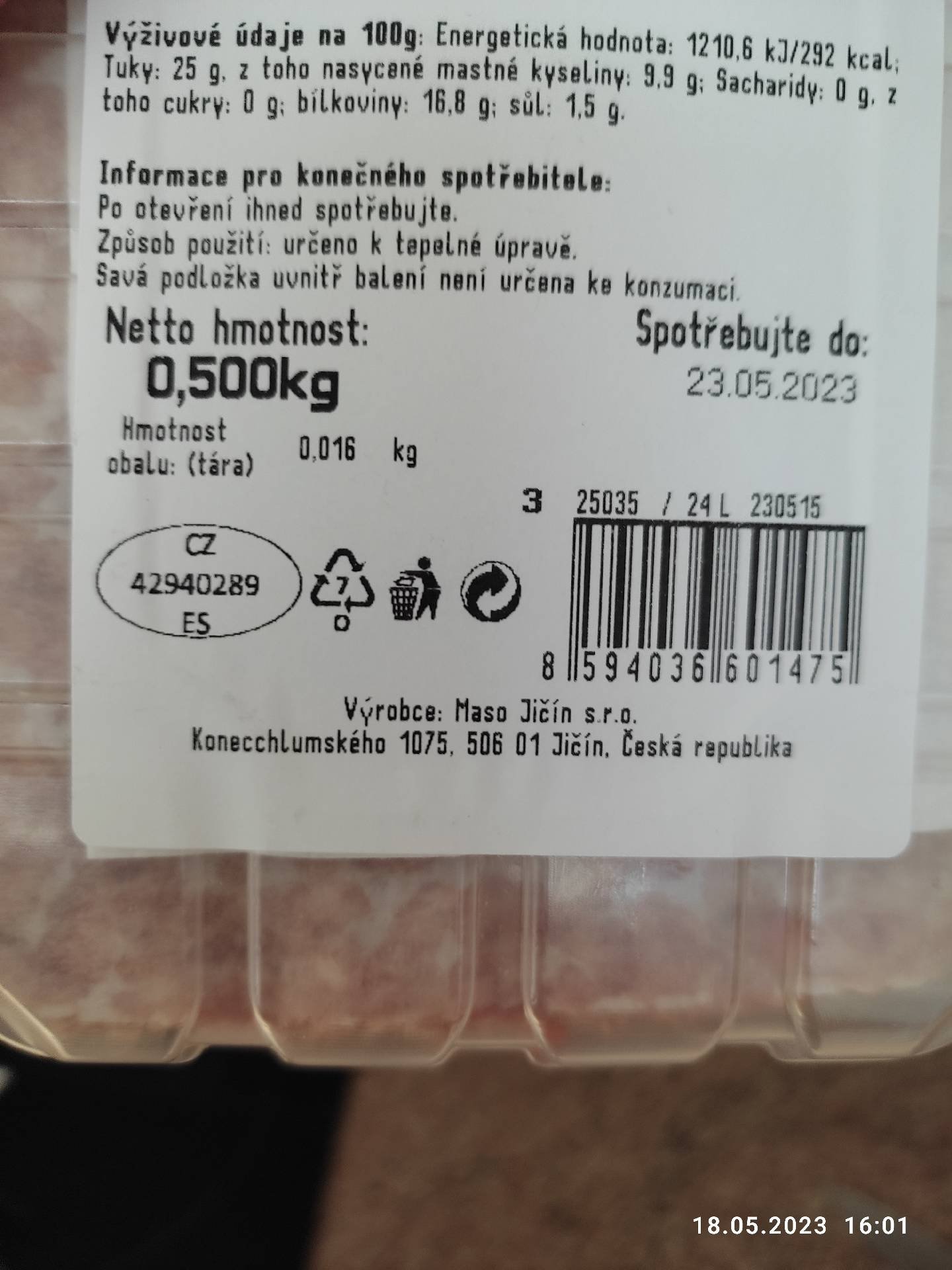 | Obsah přidaných dusitanů | - neuvedeno - | 0 |