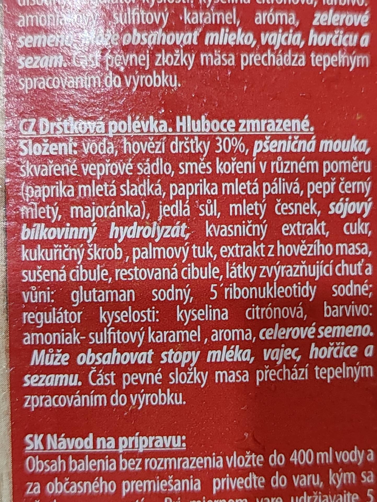 | Obsahuje (modifikovaný) škrob, želatinu |