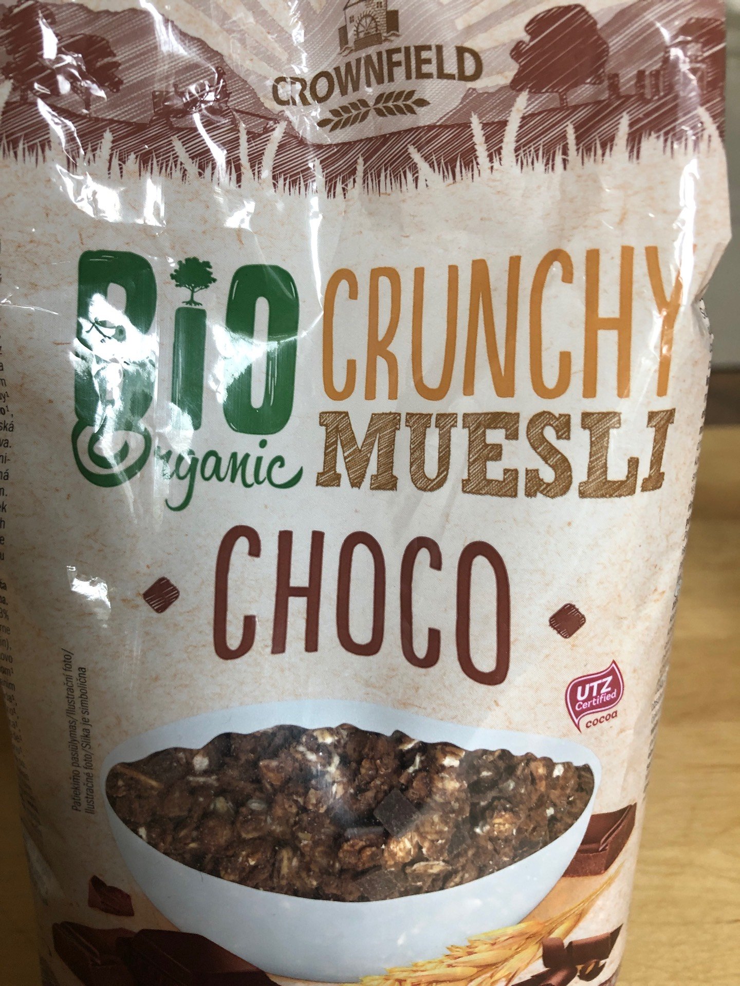 Křupavé müsli s kousky hořké a mléčné čokolády (15%).