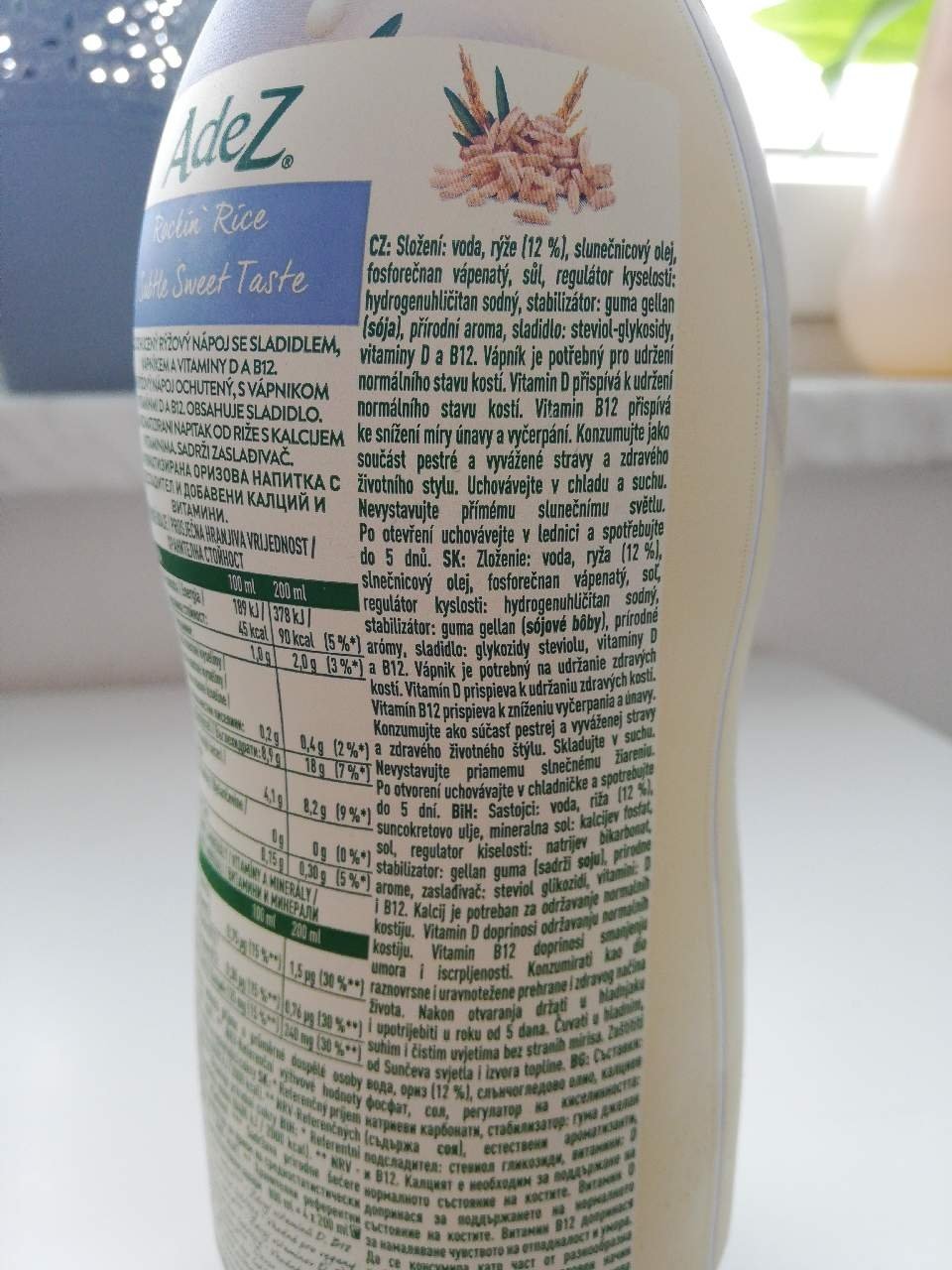 Ochucený rýžový nápoj se sladidlem, vápníkem, a vitamíny D a B12.