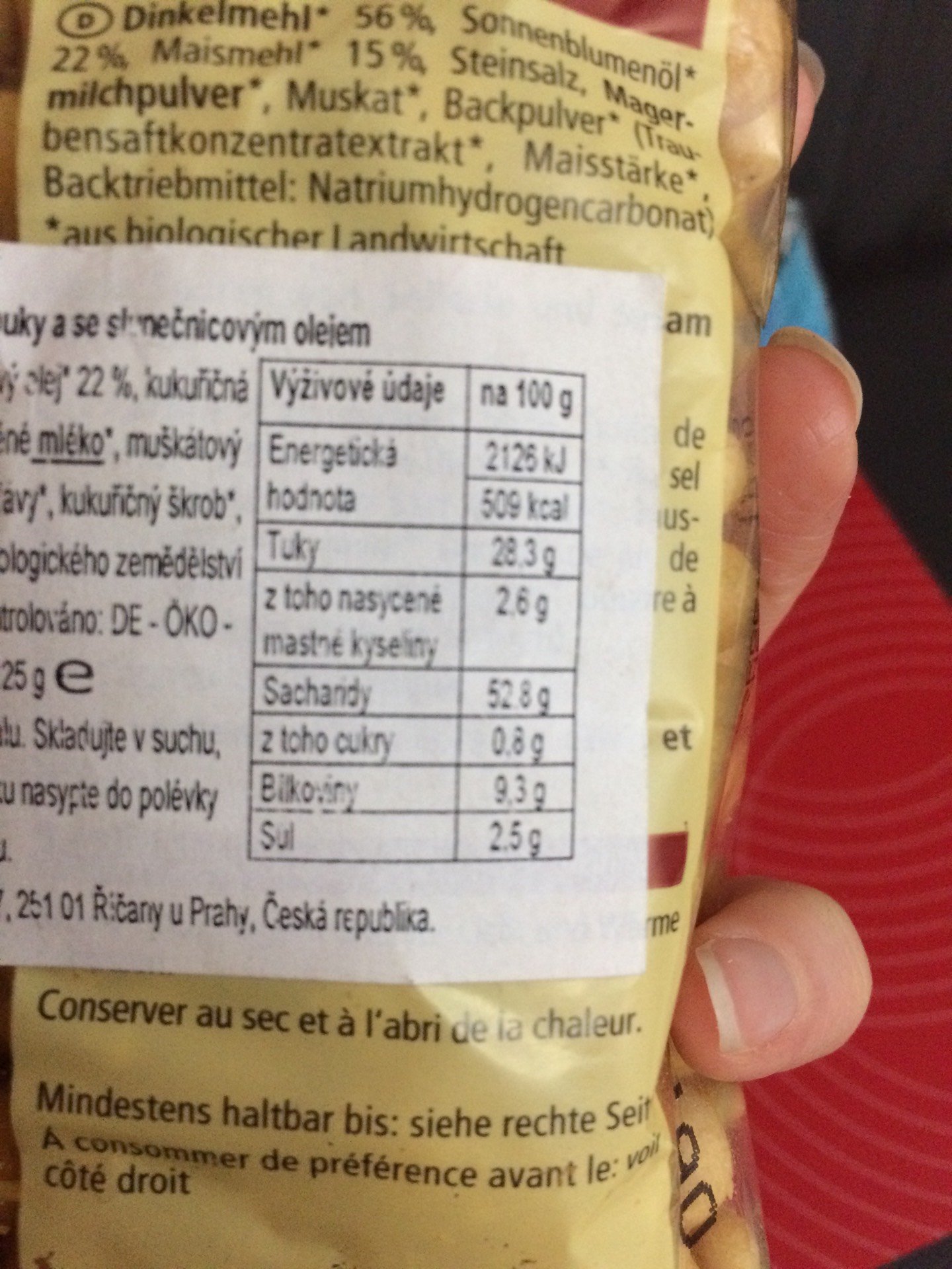 | Obsahuje palmový olej/tuk/palmojádrový tuk |