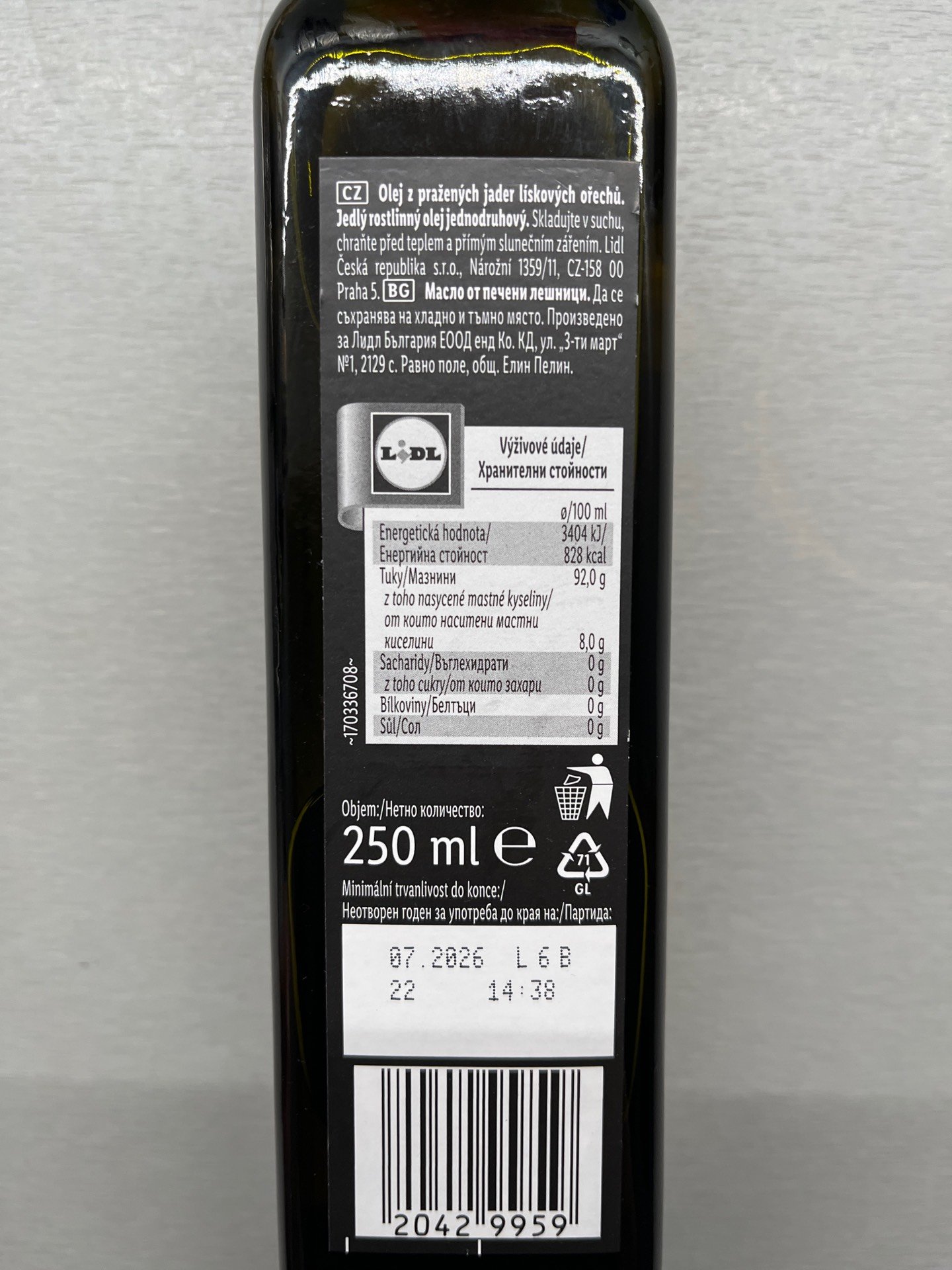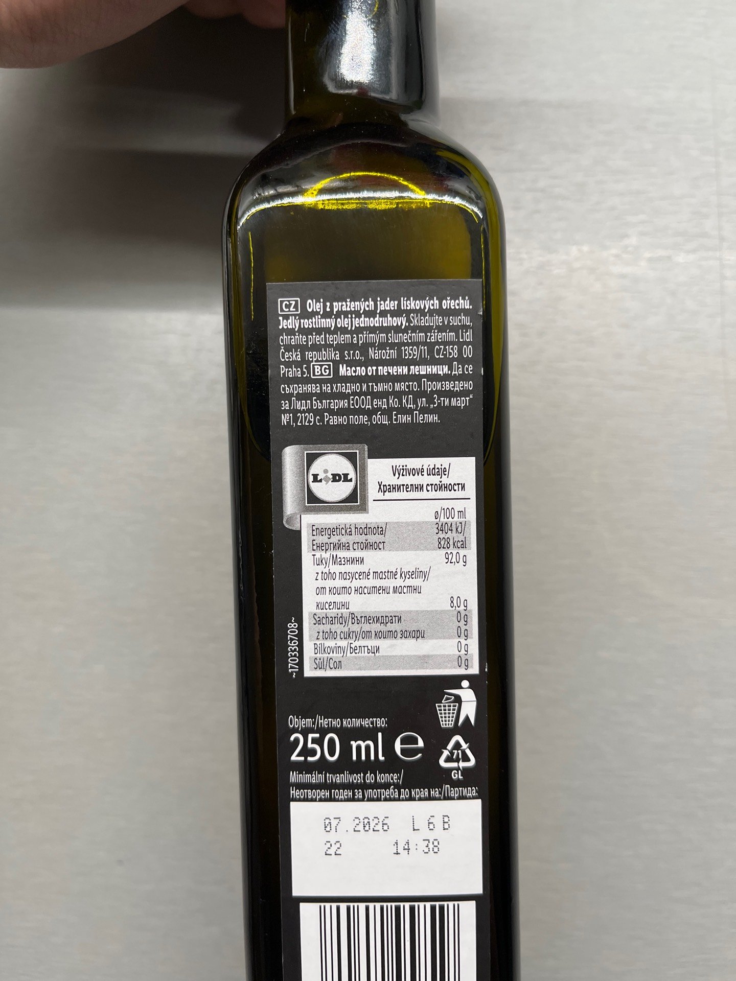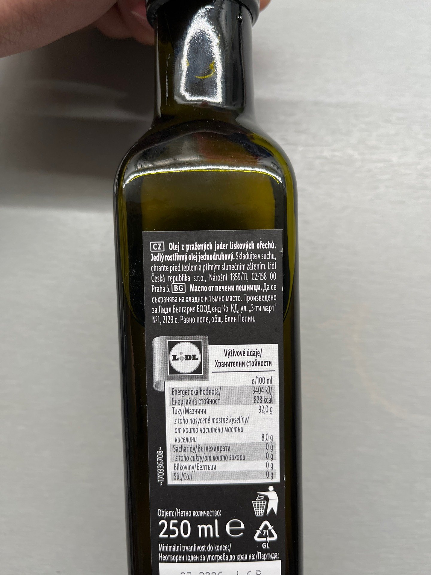 Olej z pražených jader lískových ořechů