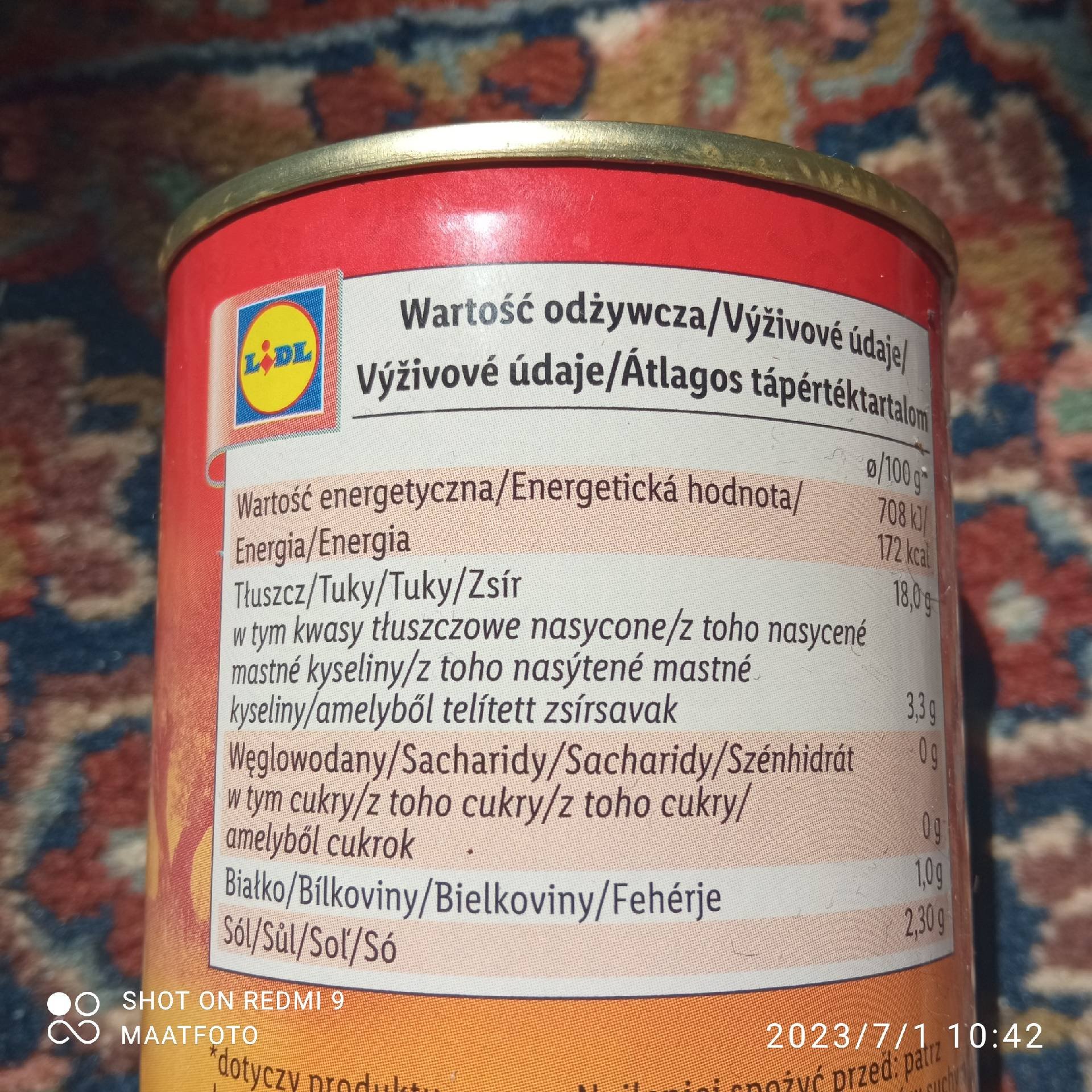 | Energie | 169 kcal | 592 kcal | 8 % |