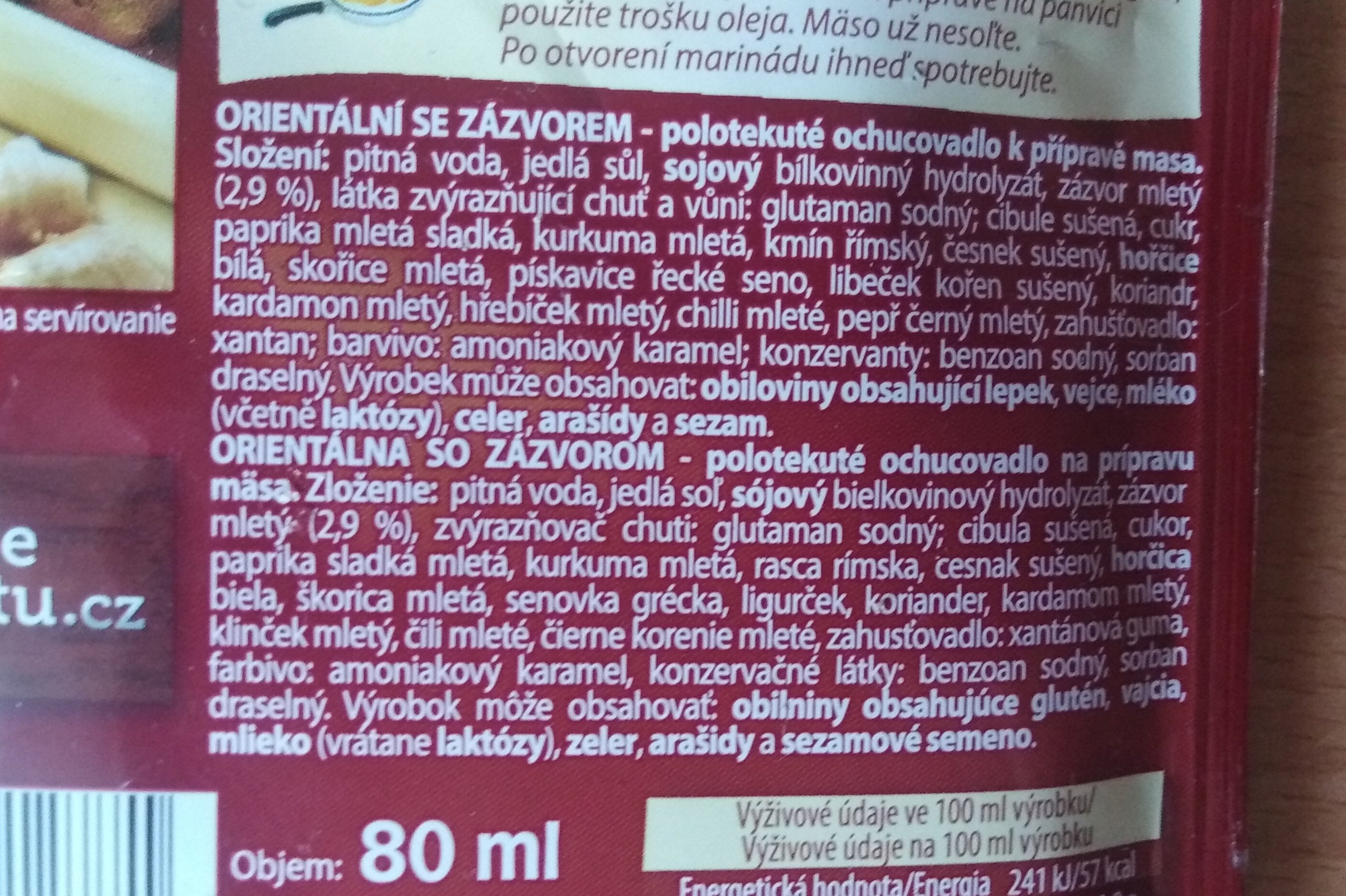 | Obsahuje (modifikovaný) škrob, želatinu |