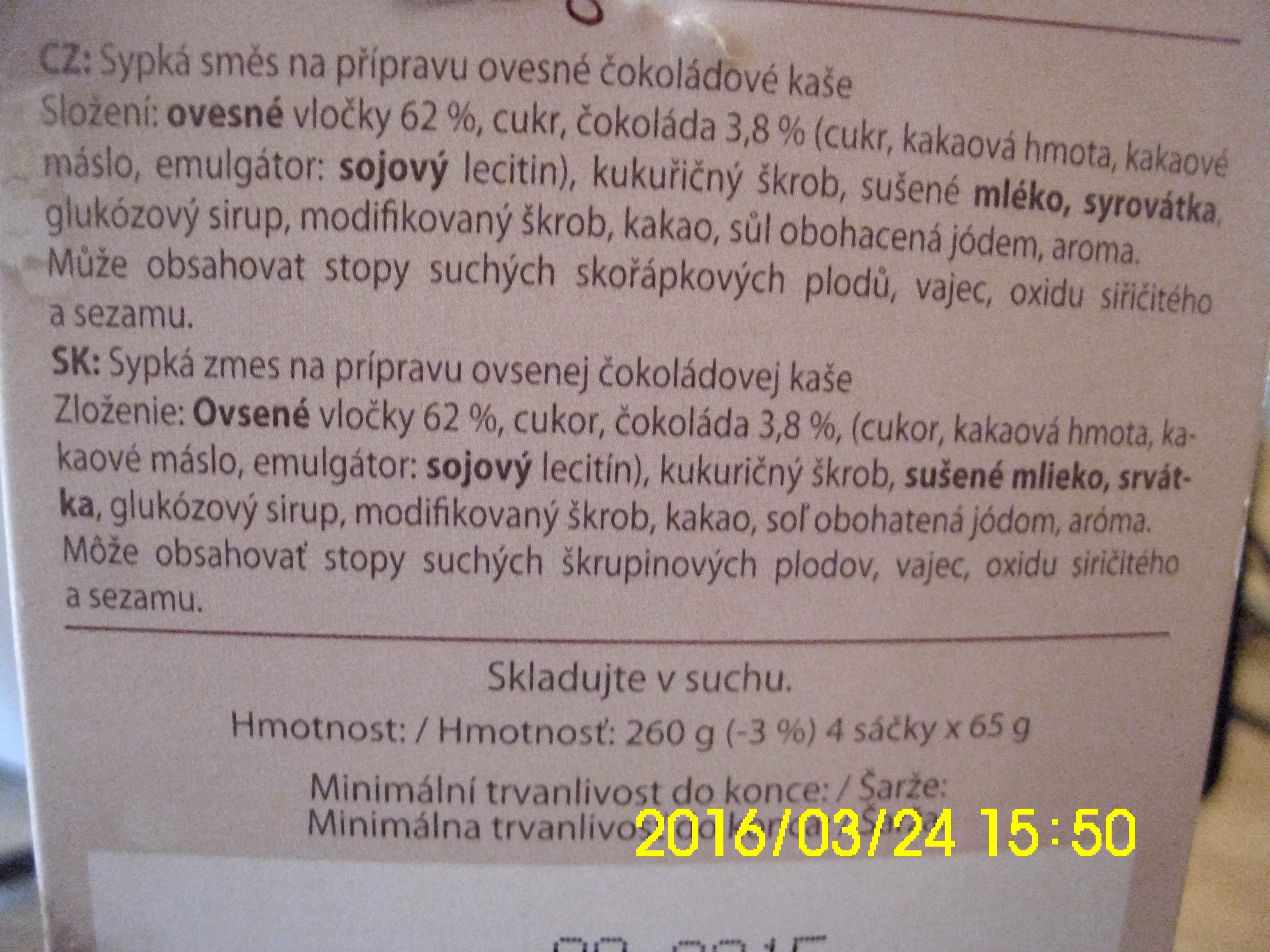 Sypká směs na přípravu ovesné čokoládové kaše.
