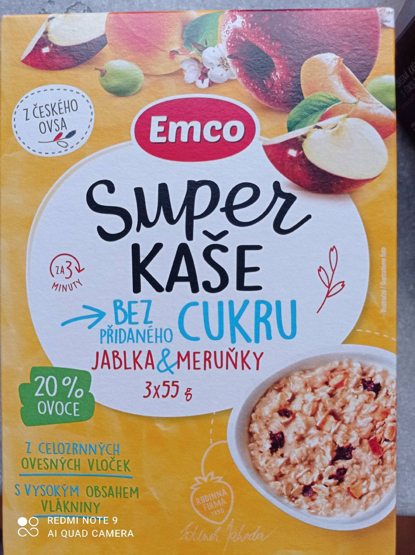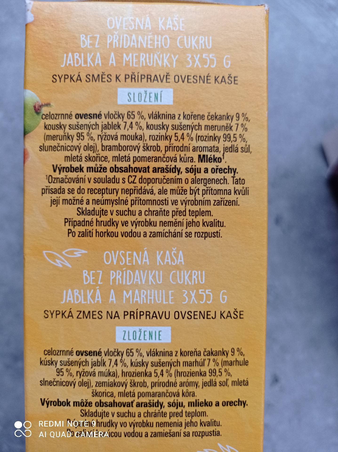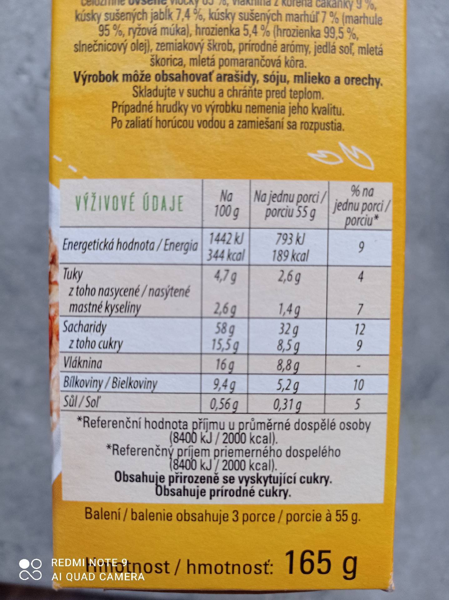 Ovesná kaše bez přidaného cukru. Jablka a meruňky, 3x55g. Sypká směs k přípravě ovesné kaše.