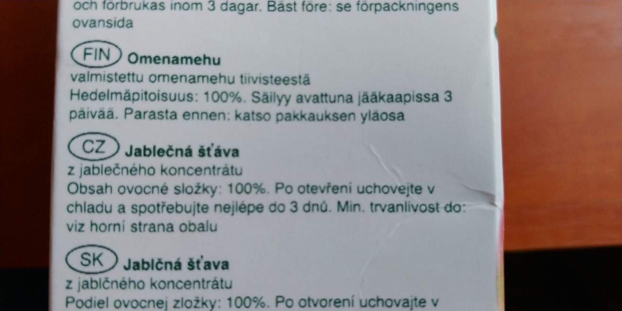 Konkrétní požadavky na složení 100% ovocný podíl z koncentrátu 2