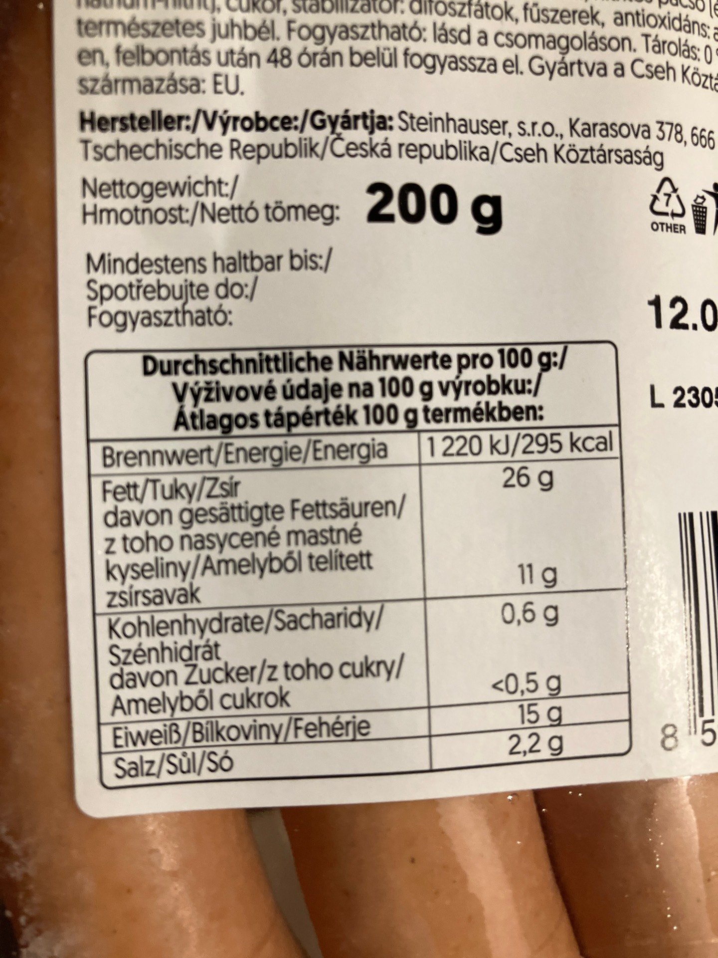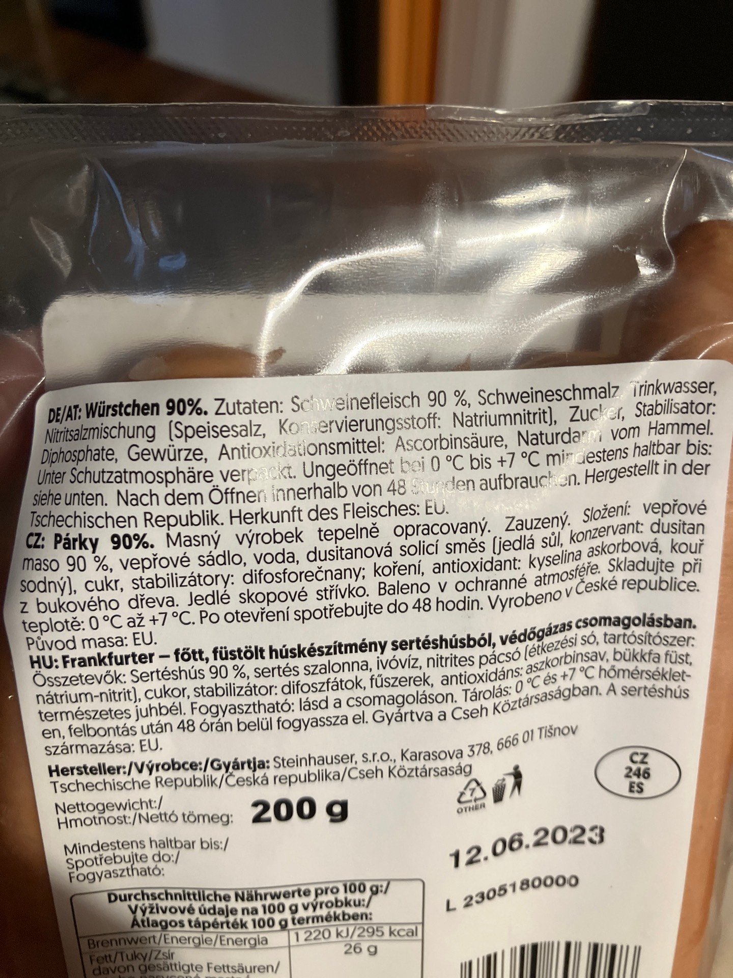 | Obsah přidaných dusitanů | není znám jiný než zákonný podíl | 0 |