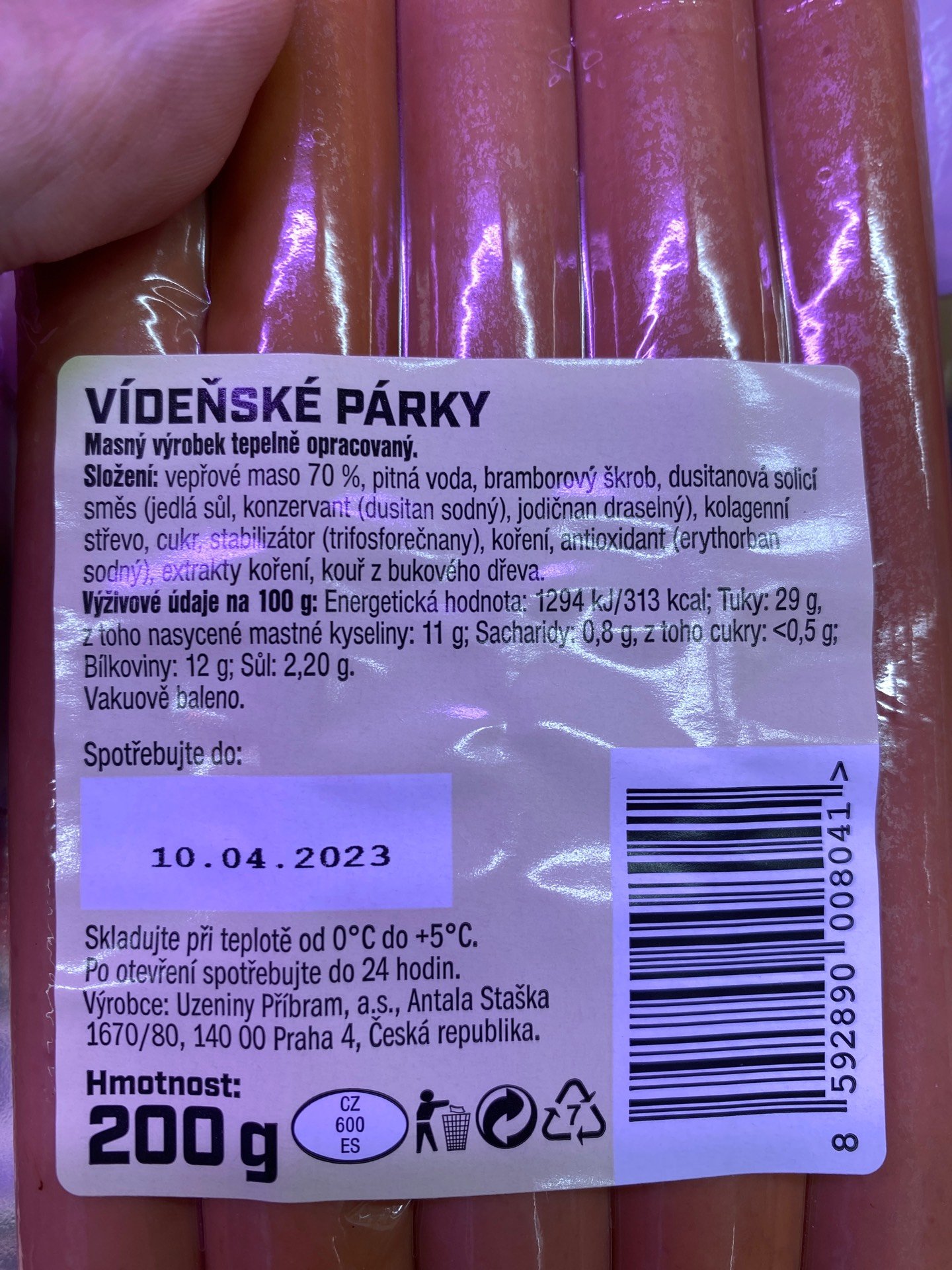 | Výrobce: | Uzeniny Příbram, a.s. |