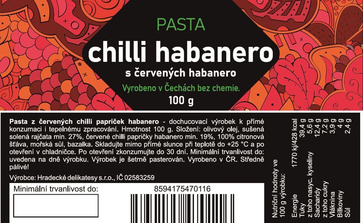 Pasta z červených chilli papriček habanero - dochucovací výrobek k přímé konzumaci i tepelnému zpracování.