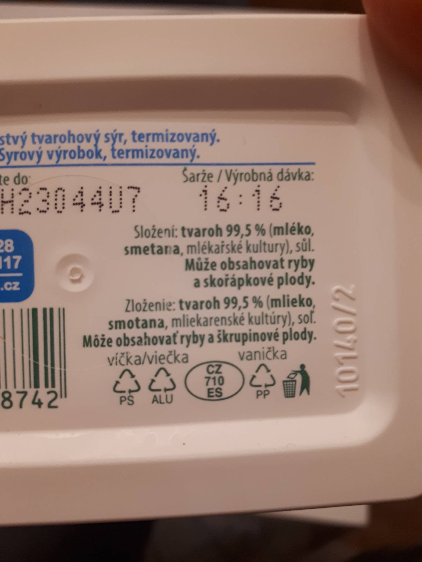 Čerstvý tvarohový sýr, termizovaný,