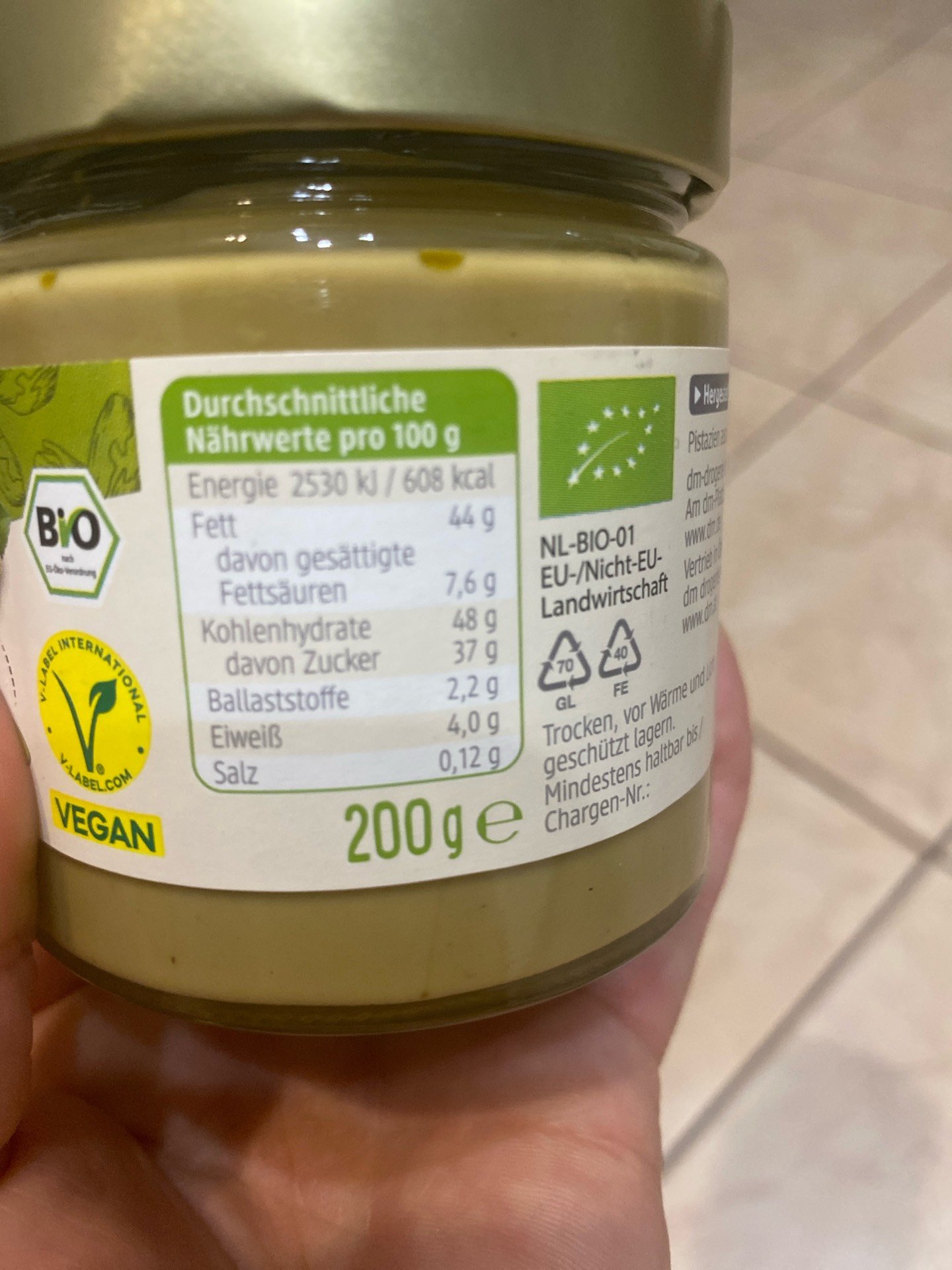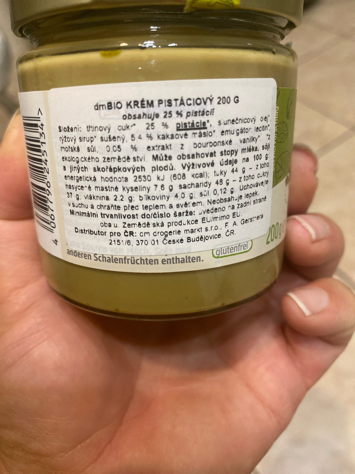 bio; obsahuje 25% pistácií
