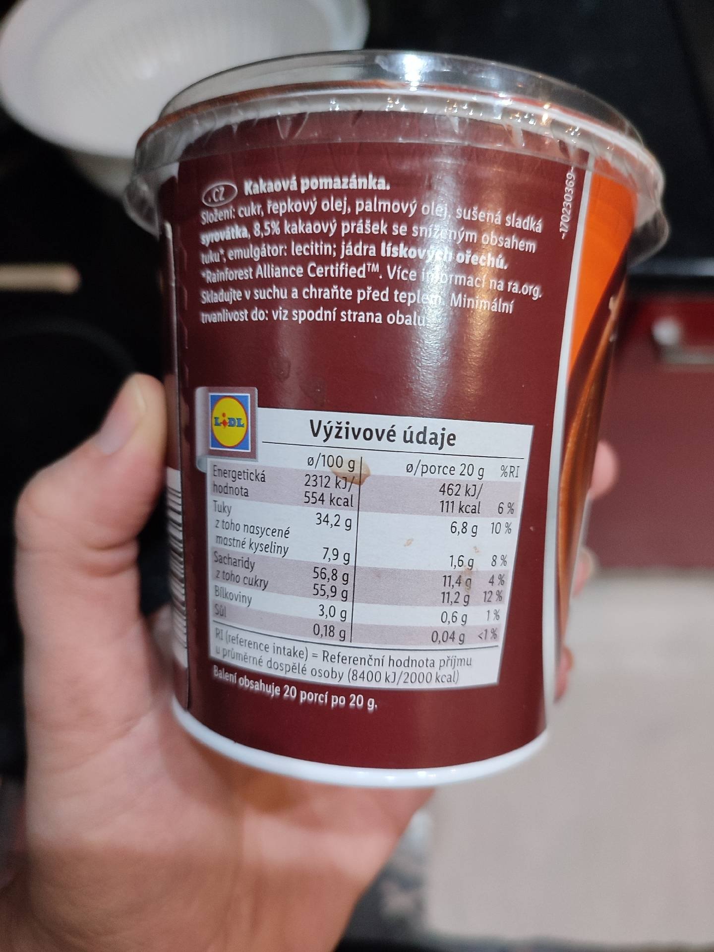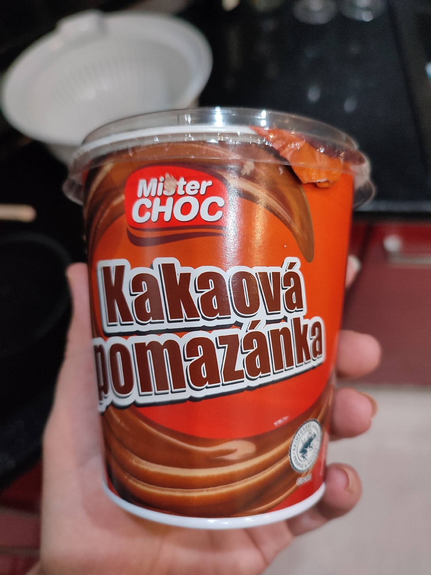 Kakaová pomazánka s lískooříškovou příchutí. Pomazánka na chléb a pečivo.