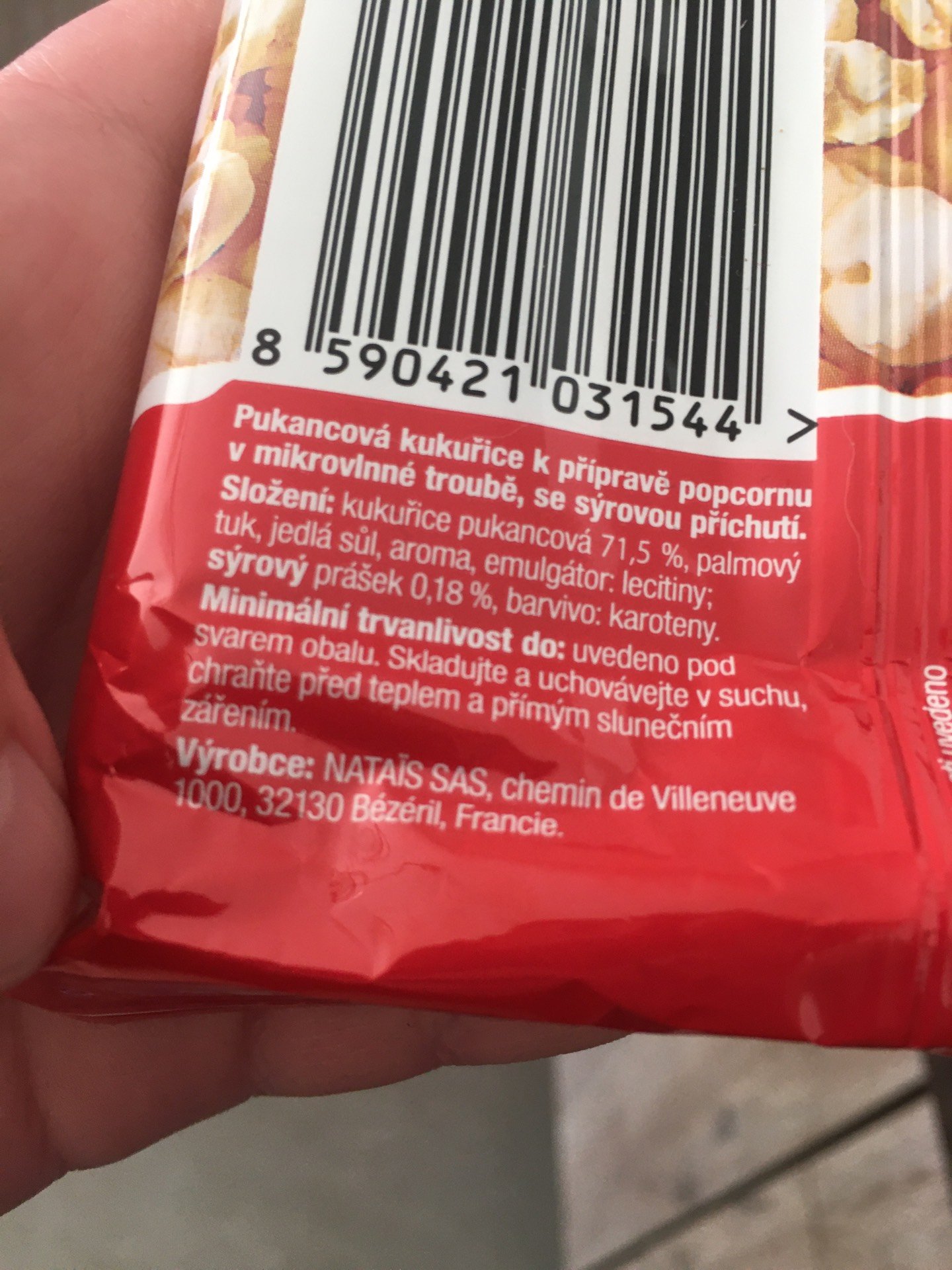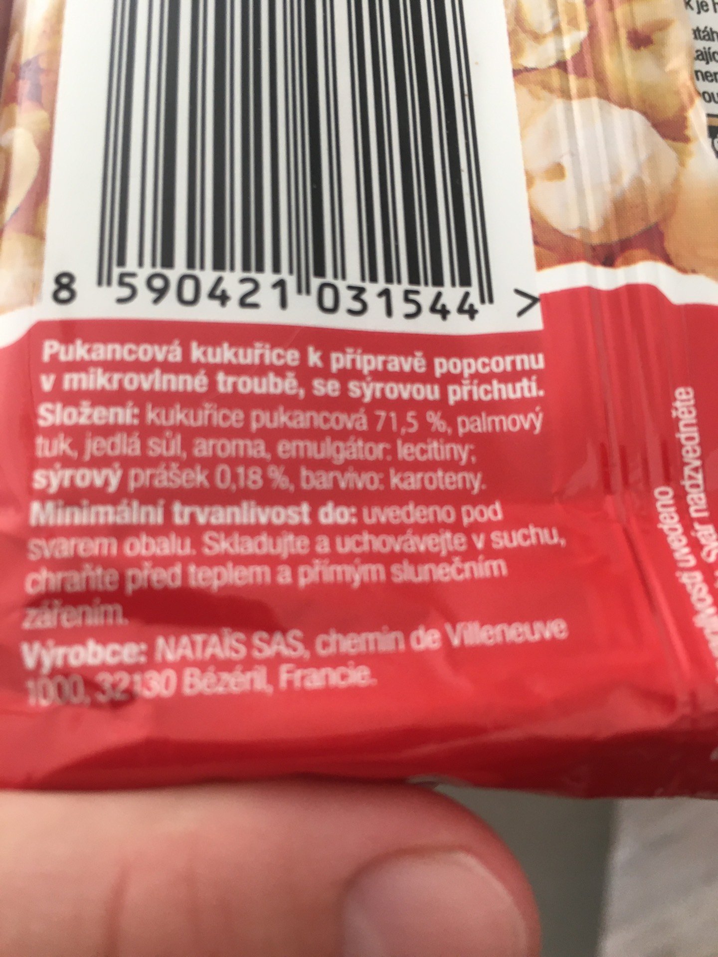 Pukancová kukuřice k přípravě popcornu v mikrovlnné troubě, se sýrovou příchutí.