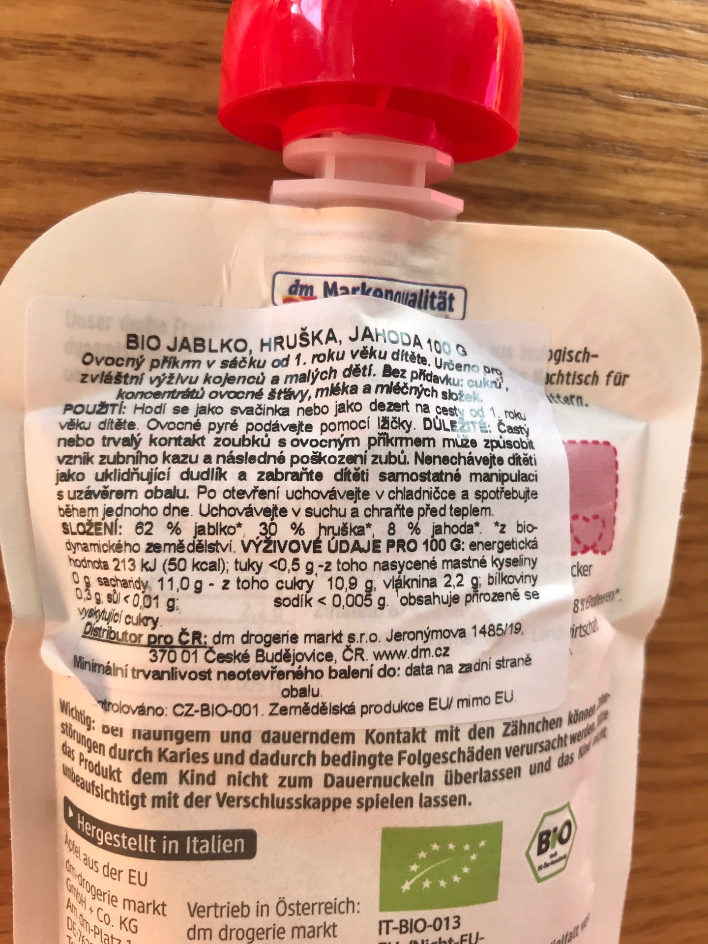 FÉR potravina > Databáze potravin > Přesnídávka > Bio jablko, hruška, jahoda