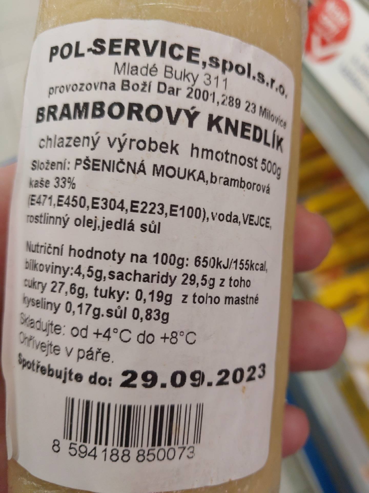 FÉR potravina > Databáze potravin > Přílohy > Bramborový knedlík
