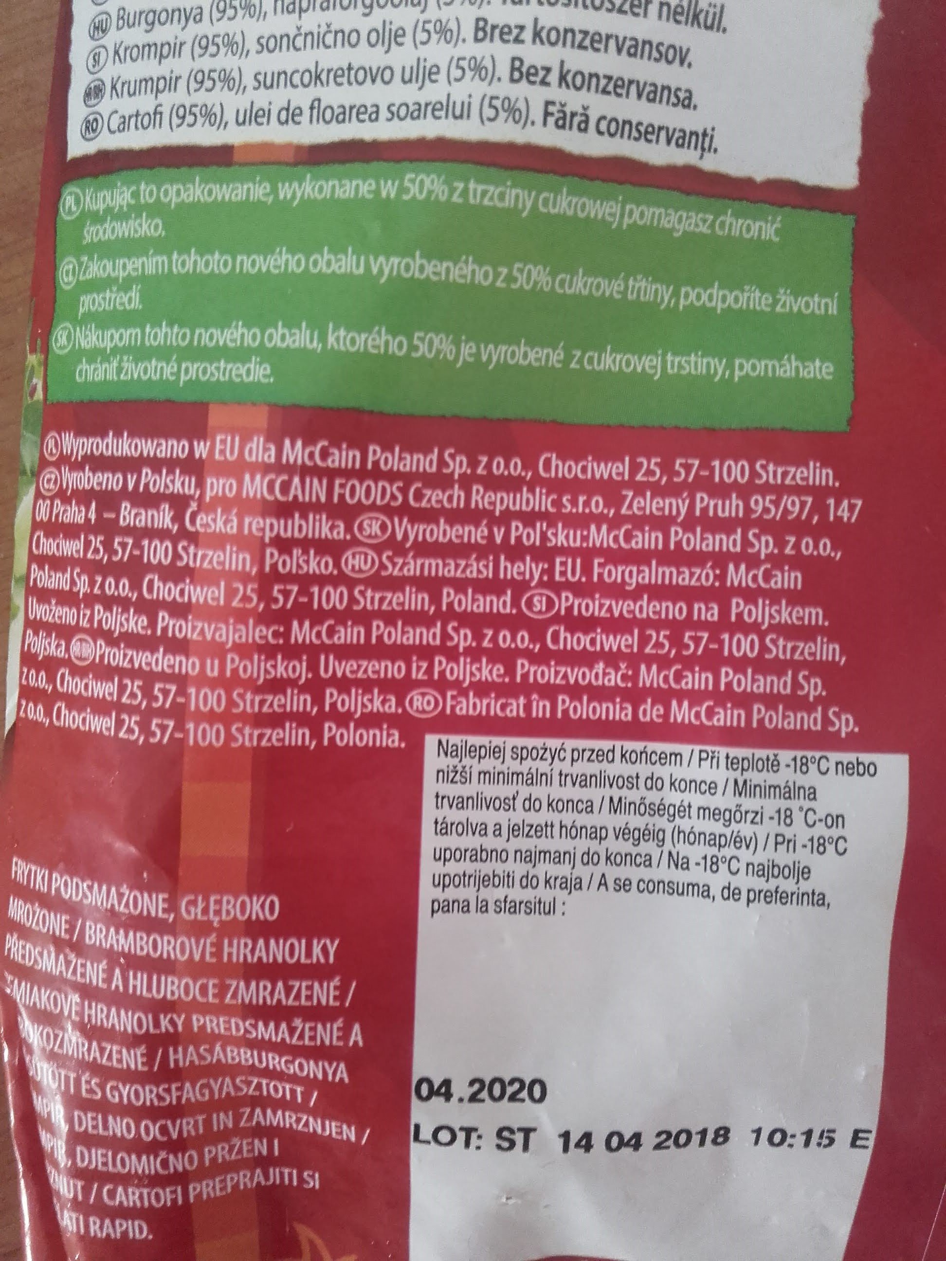 | Dodavatel: | McCain Foods czech Republic s.r.o. |