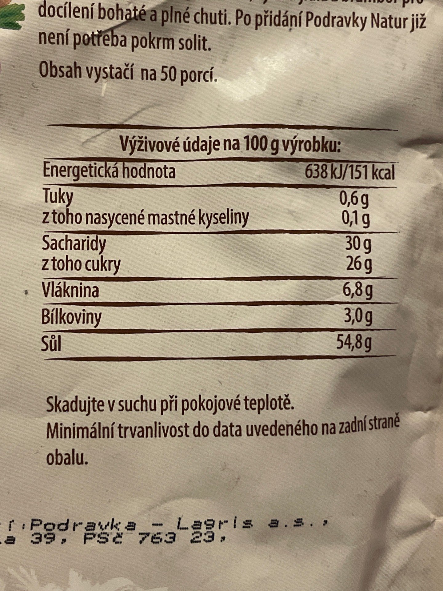 | Obsahuje složku "extrakt z droždí" |