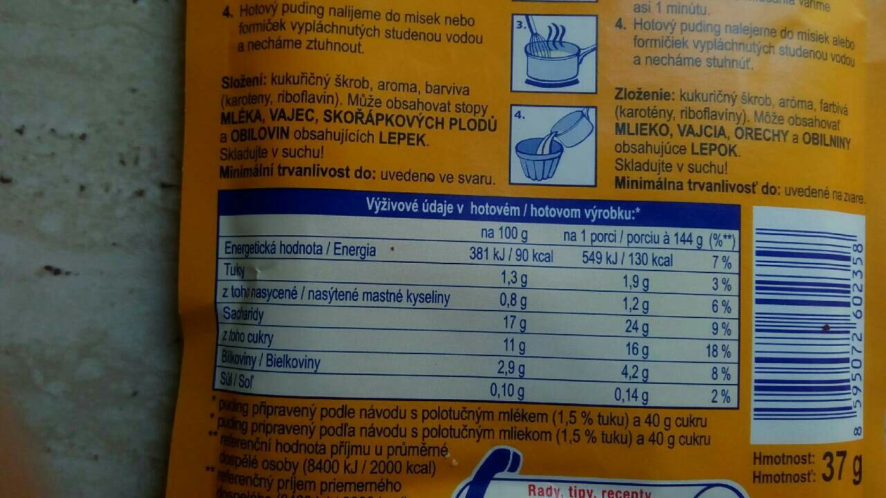 | Obsahuje (modifikovaný) škrob, želatinu |