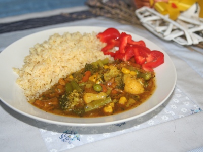 | Robi maso se zeleninovou směsí a bulgurem |