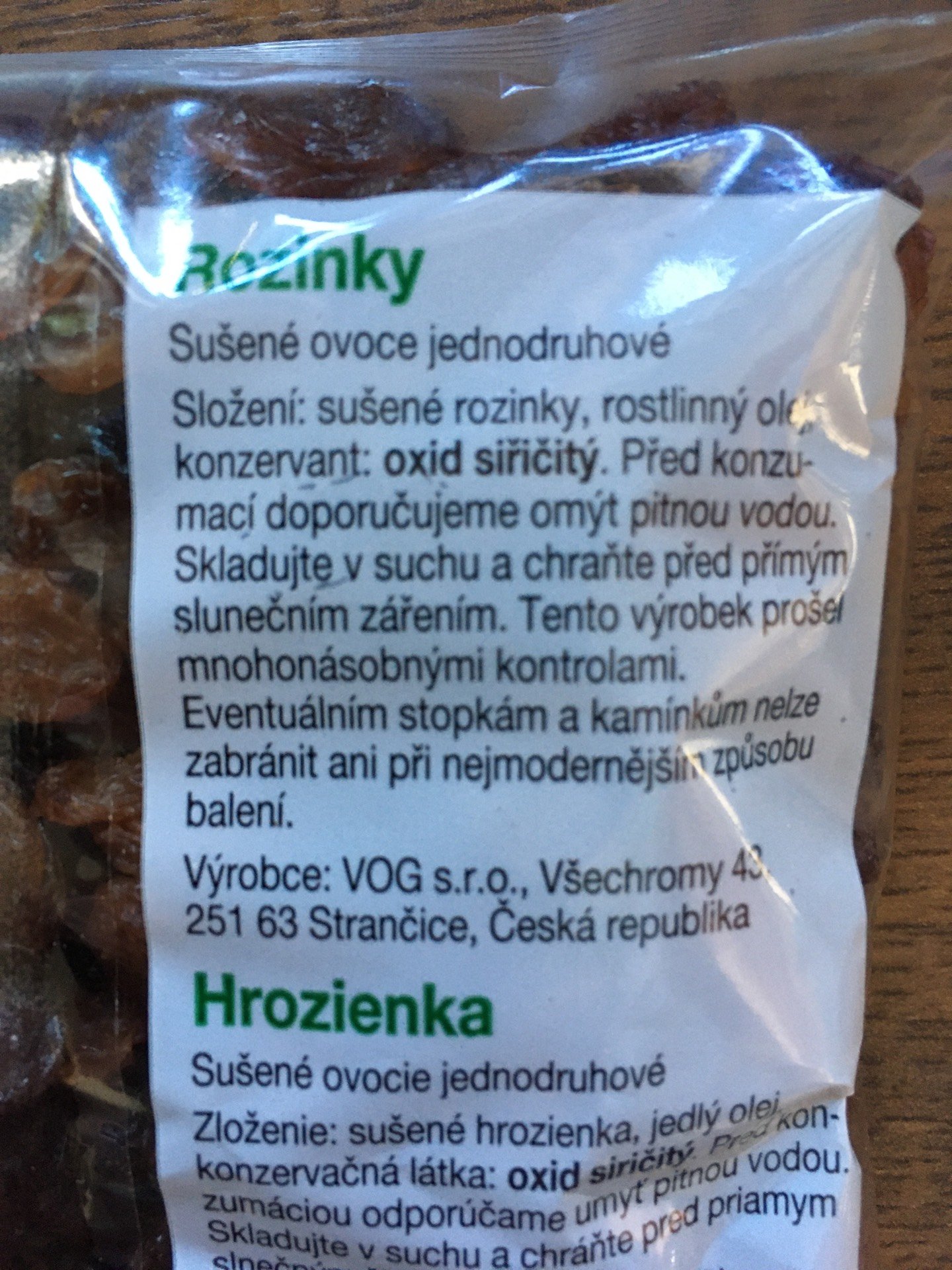 sušené rozinky