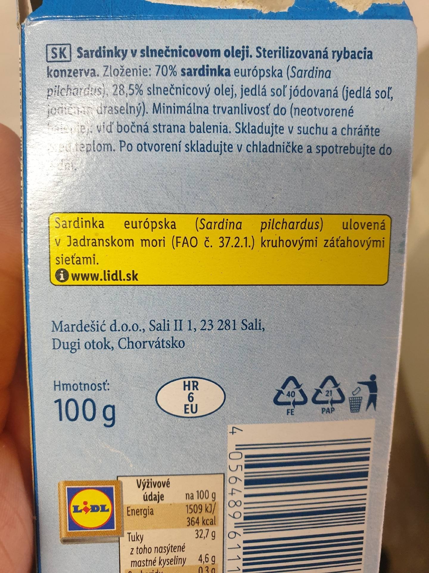 sterilovaná rybí konzerva, FAO č. 37.2.1.