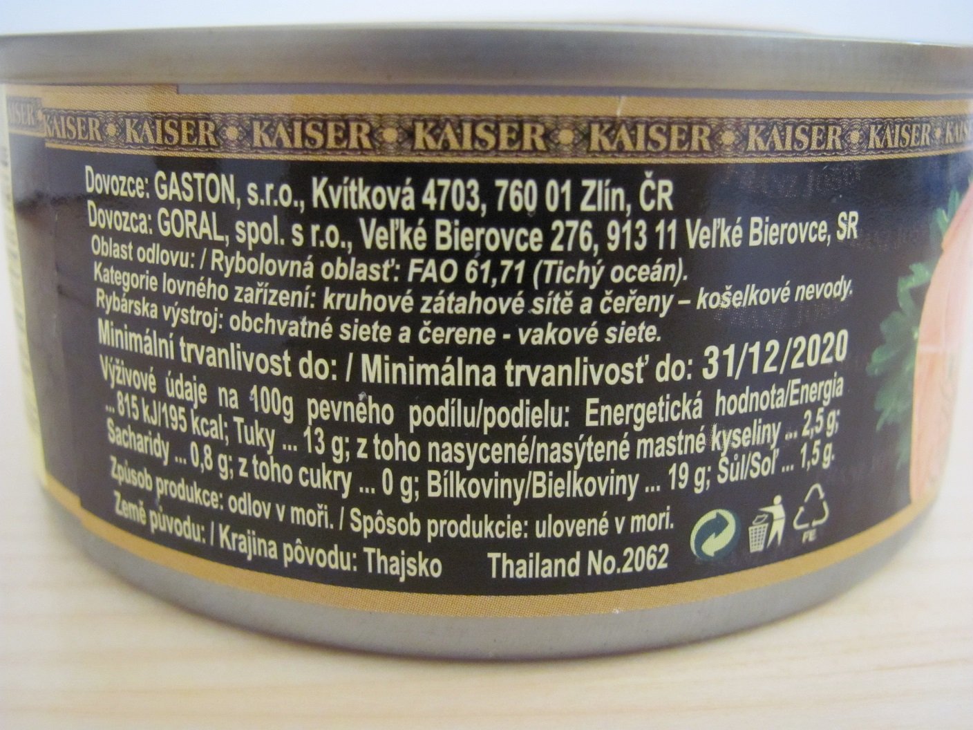 Kousky tuňáka v rostlinném oleji s chilli. Rybí konzerva. Sterilováno. Pálivý výrobek.