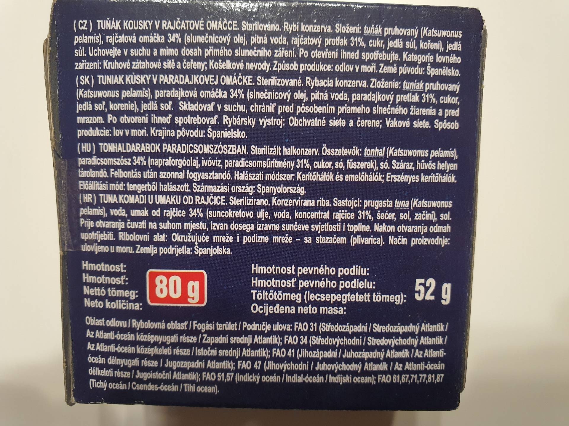rybí konzerva, odlov v moři, FAO 31, 34, 41, 47, 51, 57, 61, 67, 71, 77, 81, 87