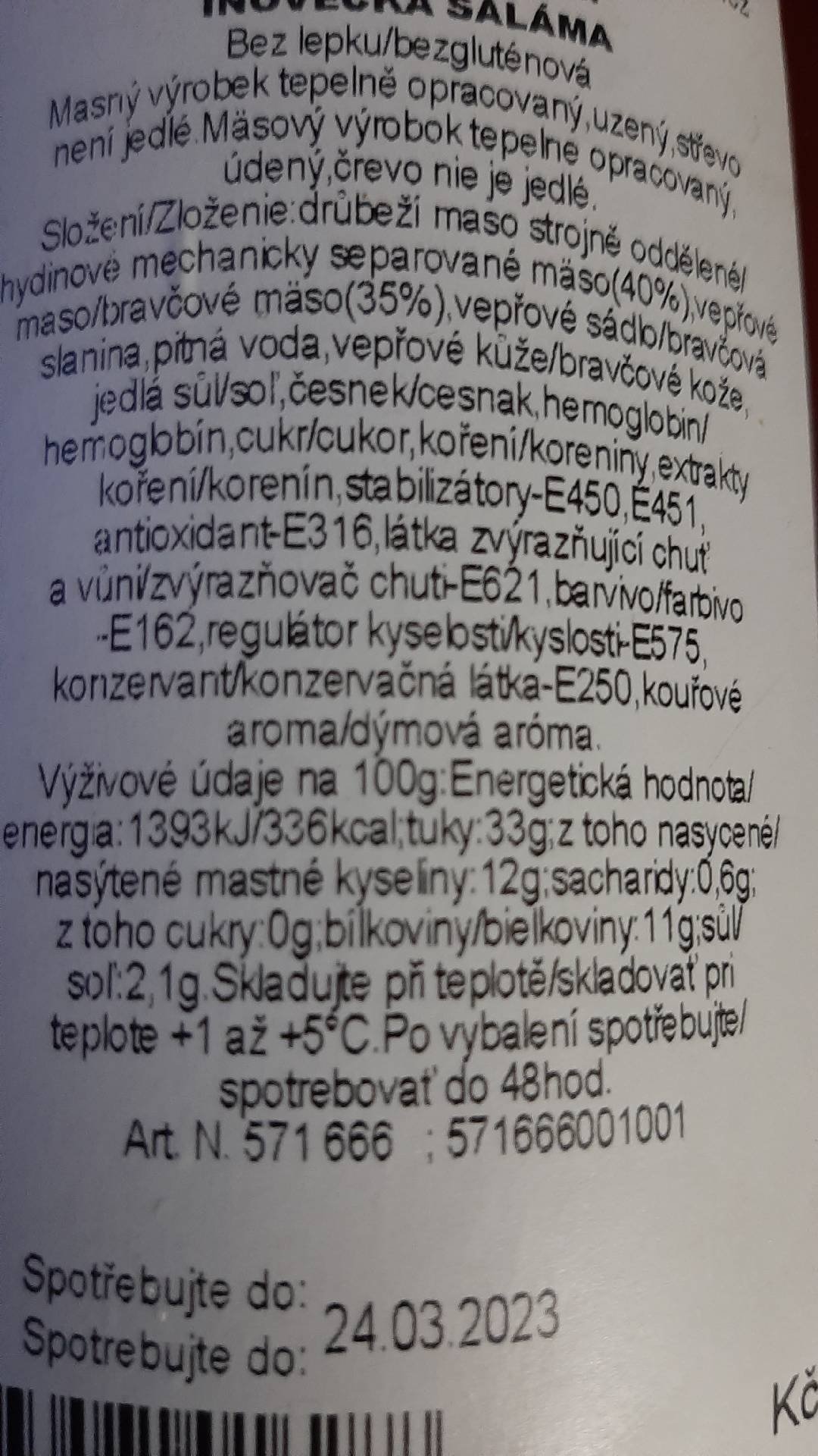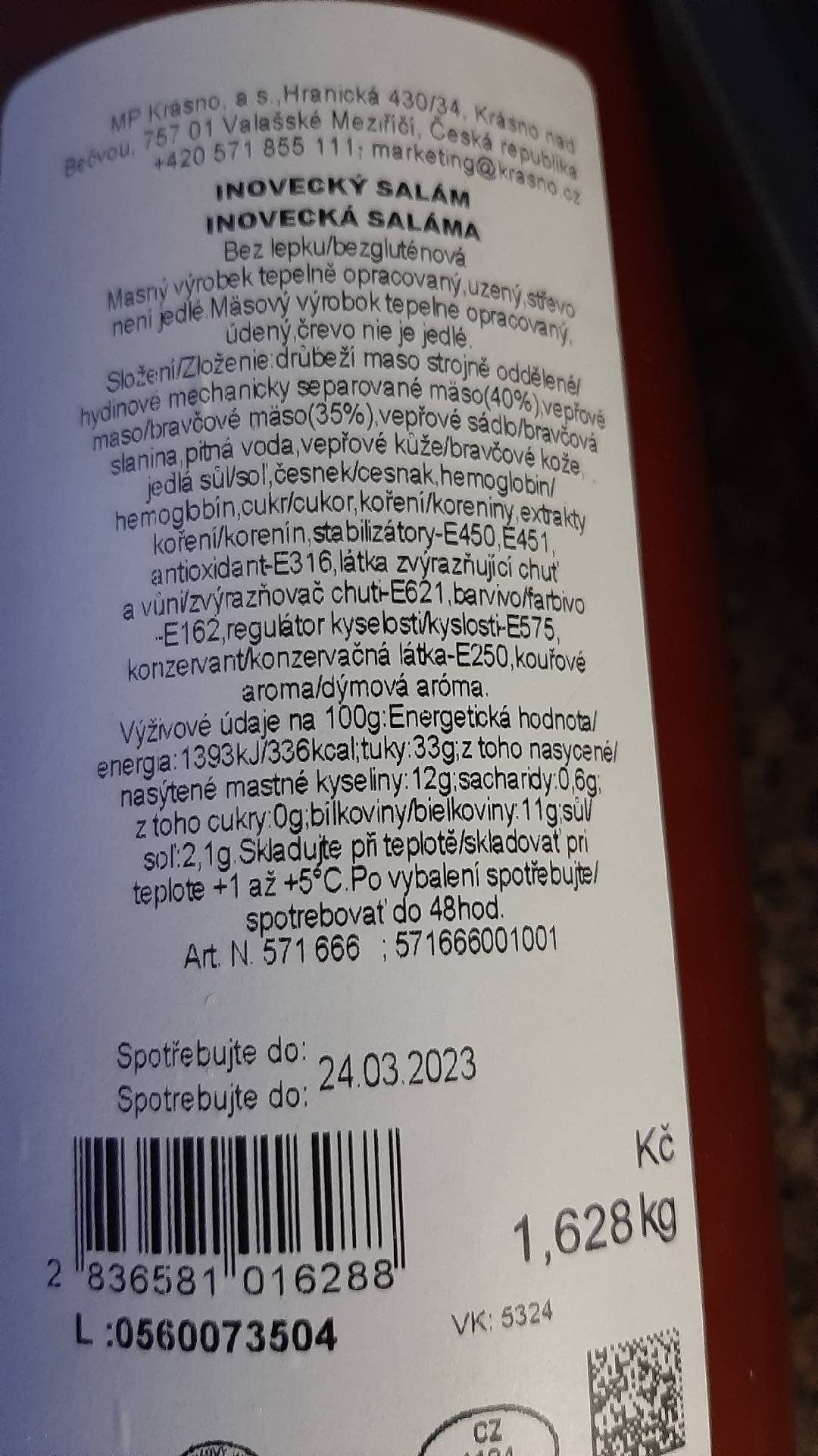Masný výrobek tepelně opracovaný, uzený, střevo není jedlé.