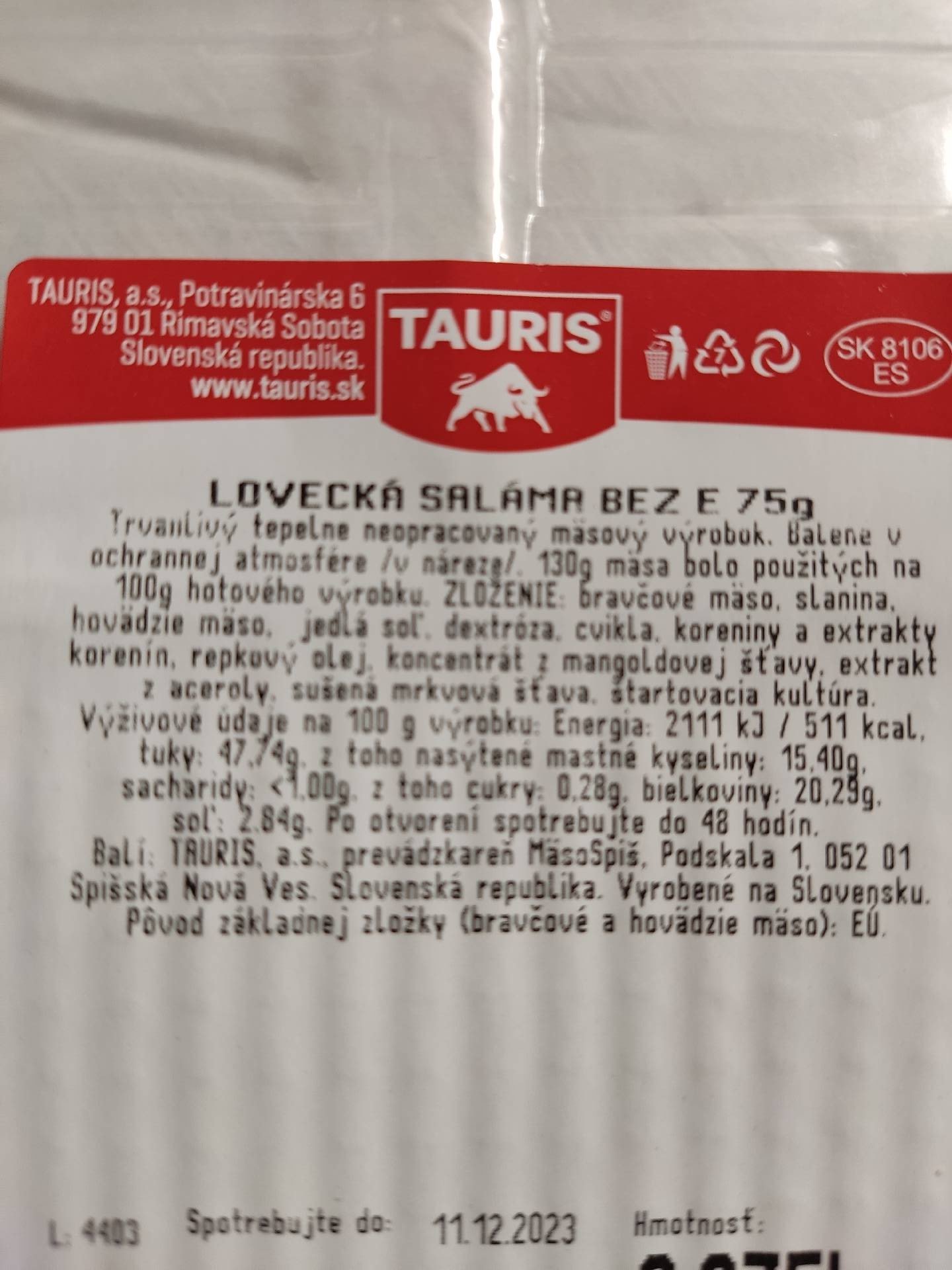 Masný výrobek trvanilivý tepelně neopracovaný.