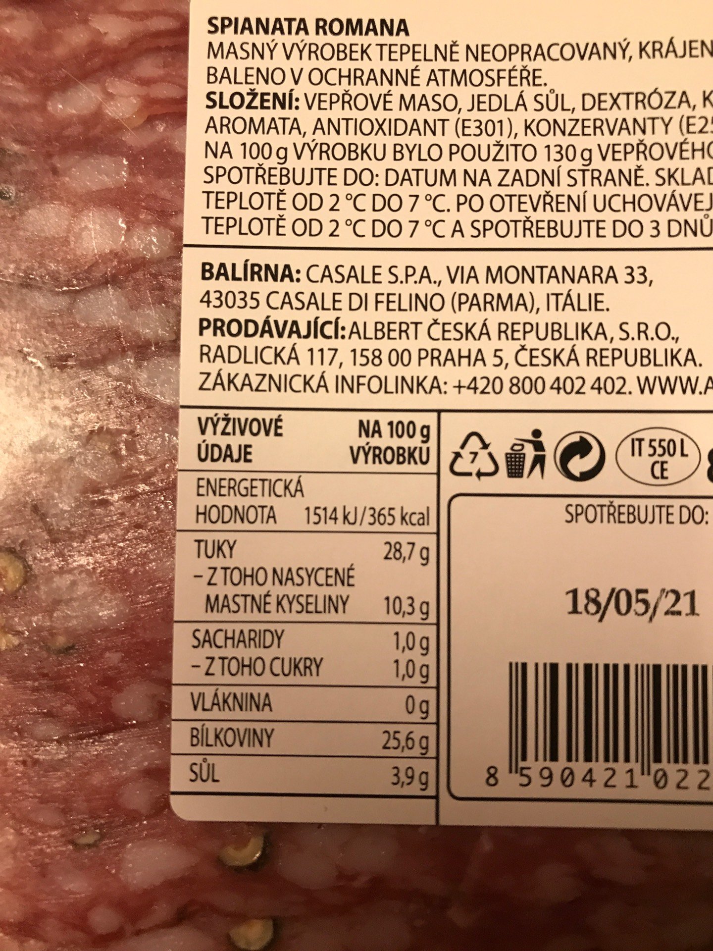 | Obsah přidaných dusitanů | není znám jiný než zákonný podíl | 0 |