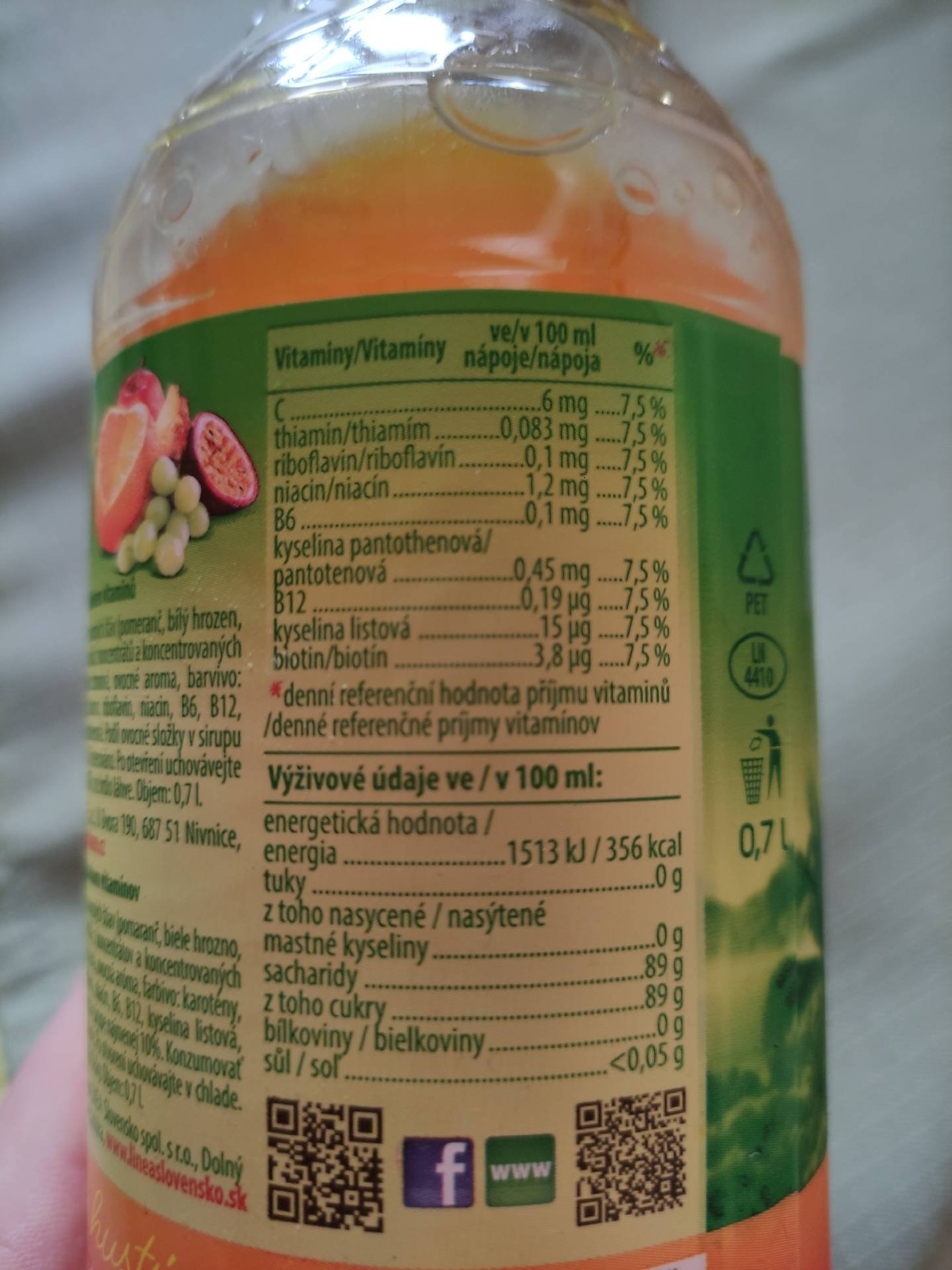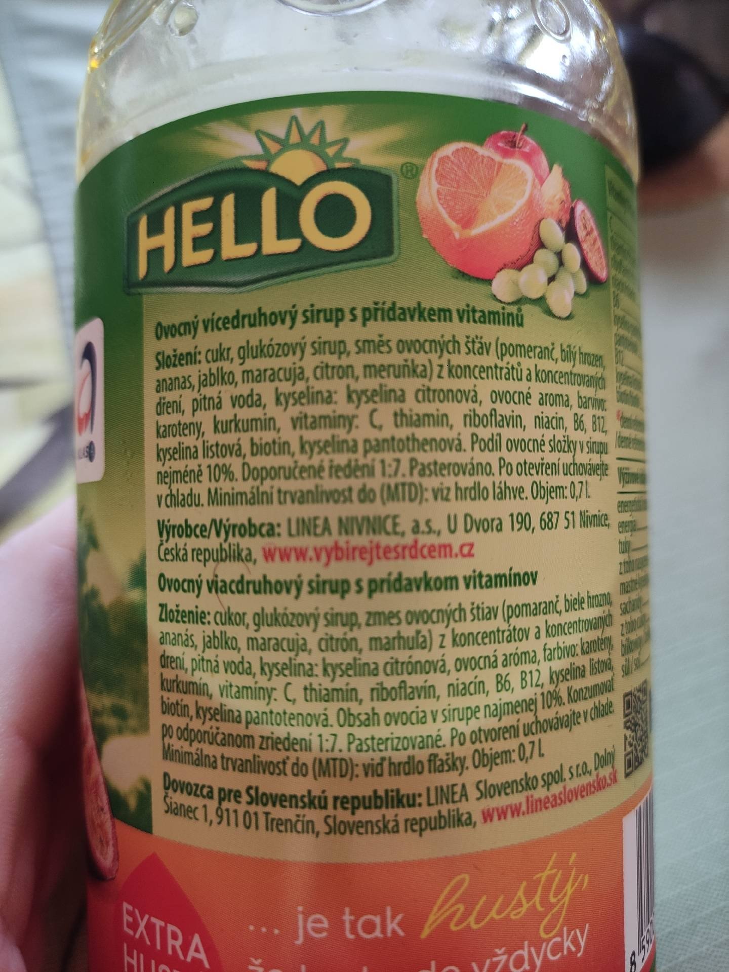 Ovocný vícedruhový sirup s přídavkem vitamínů.