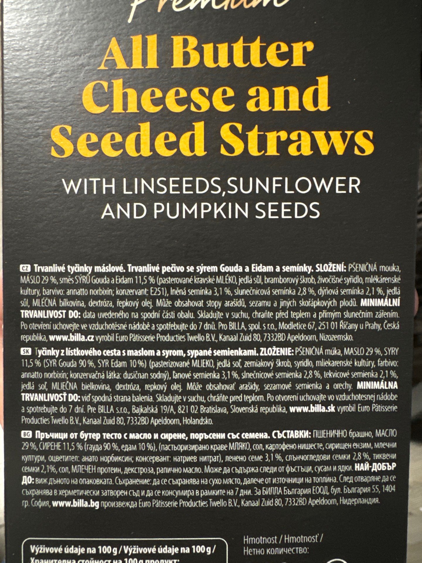 Trvanlivé pečivo se sýrem Gouda a Eidam a semínky.