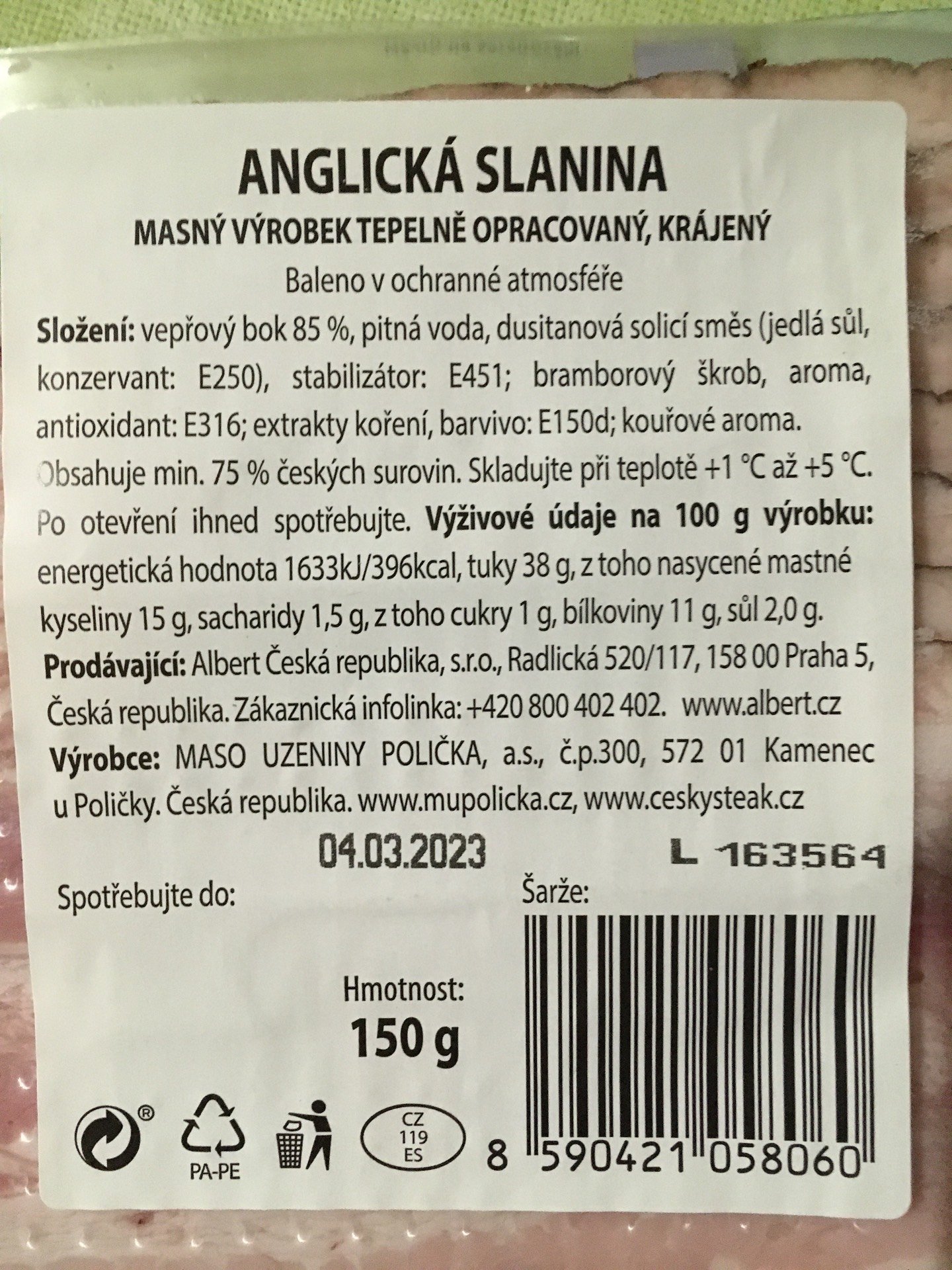 | Výrobce: | MASO UZENINY POLIČKA, a.s. |