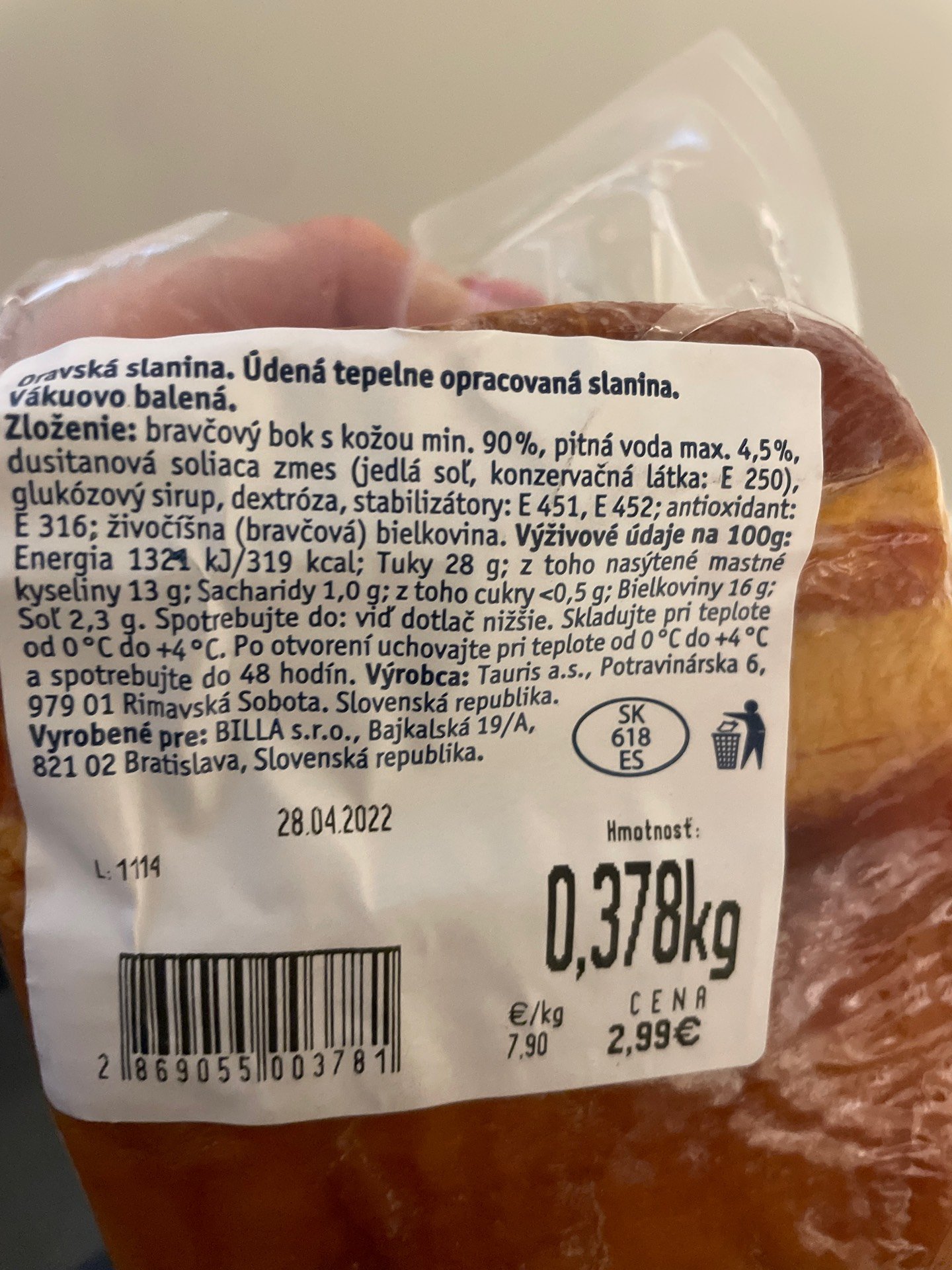 | Obsah přidaných dusitanů | není znám jiný než zákonný podíl | 0 |