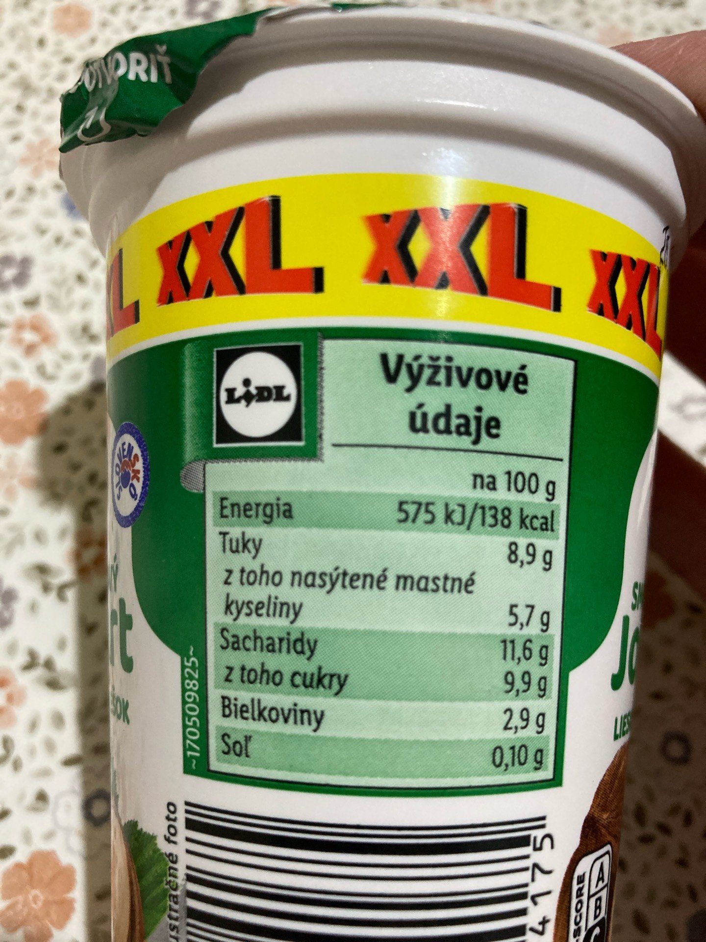 Smetanový jogurt s lískooříškovou složkou 15%.