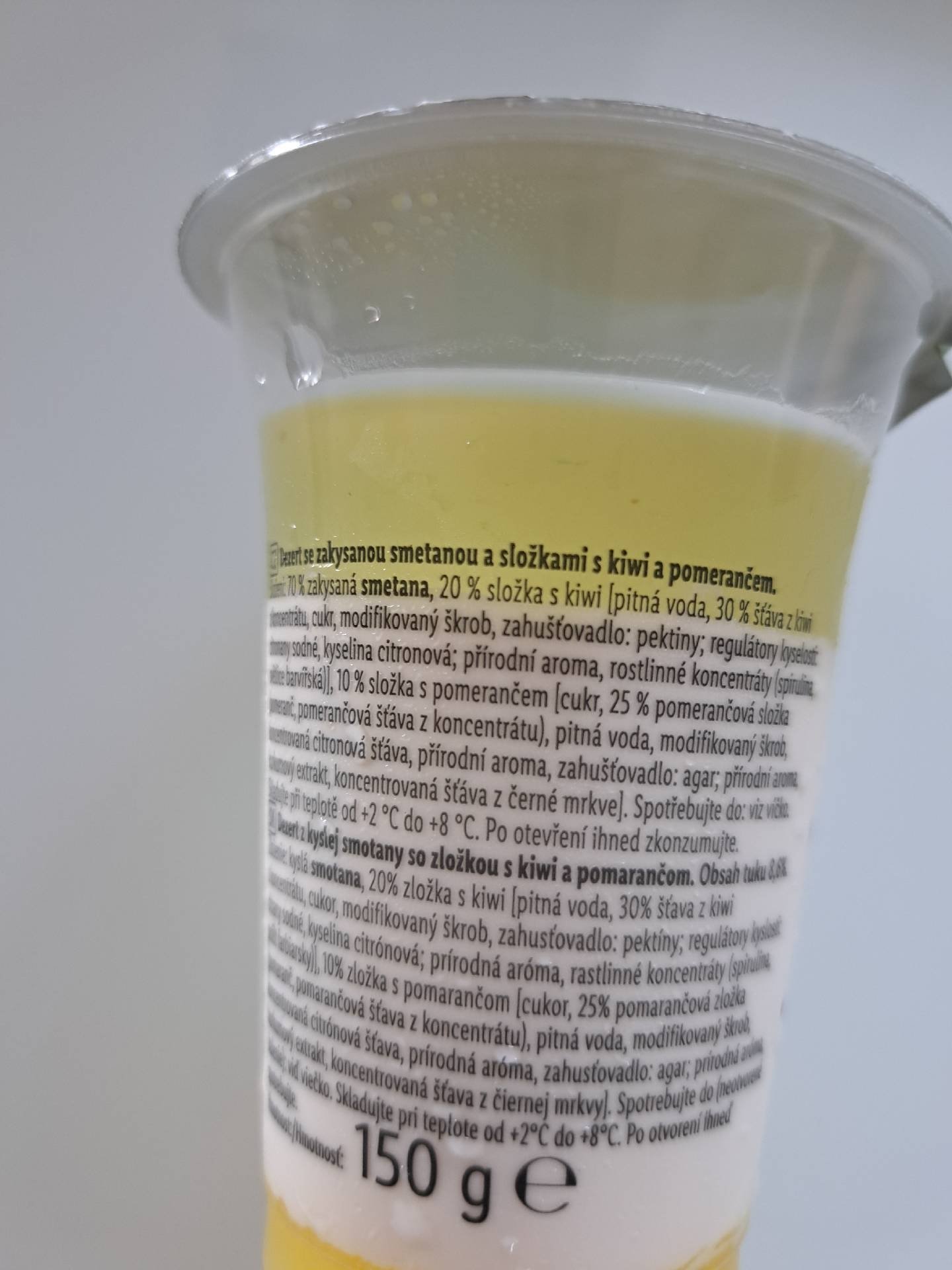 Dezert se zakysanou smetanou s kiwi a pomeranč