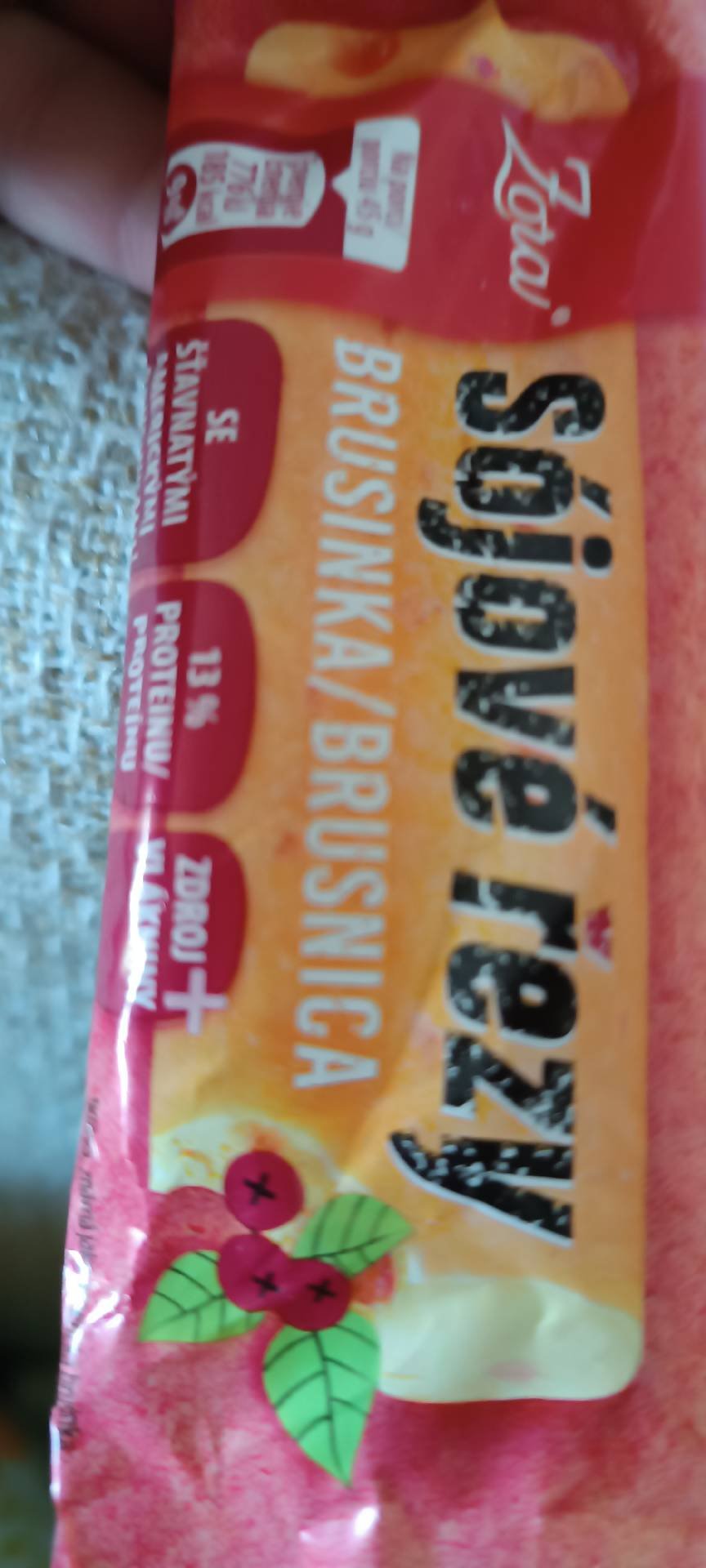 Sojová cukrovinka s proslazenými brusinkami.